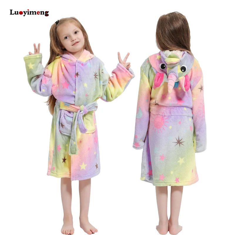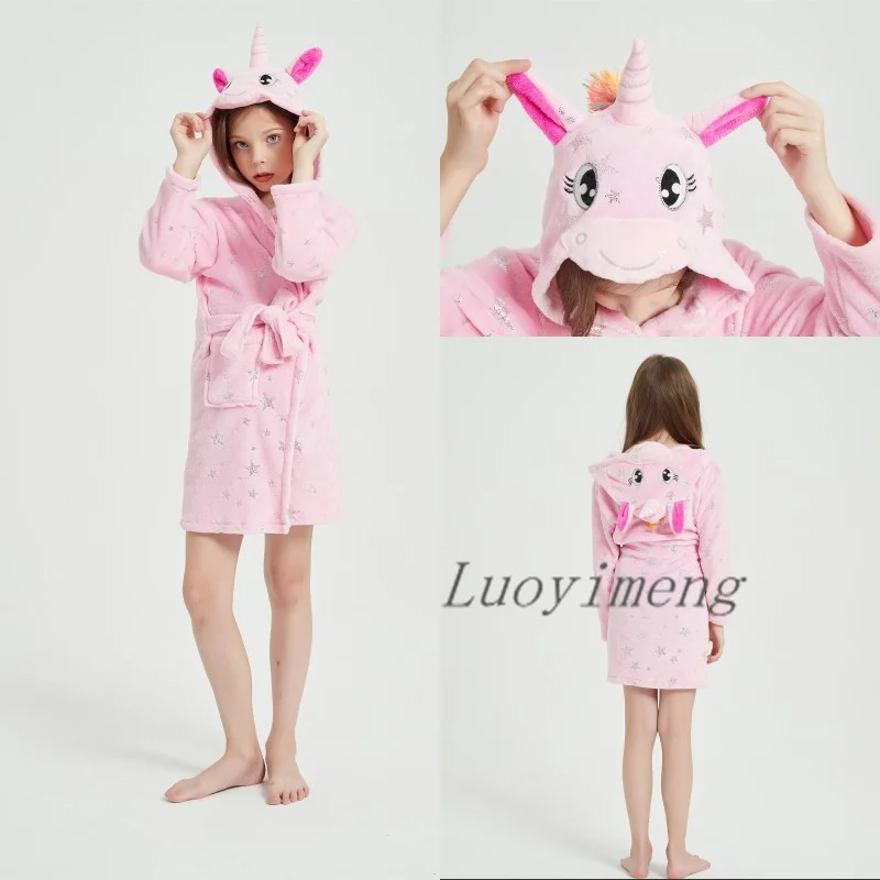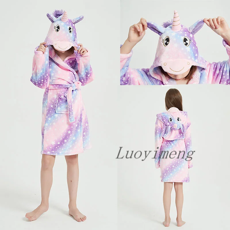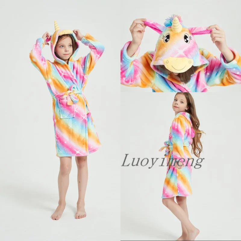 Зимняя модель для мальчиков и девочек, единорог, халаты с капюшоном, полотенце, Пляжная детская одежда для сна, детская одежда, детские пижамы, ночная рубашка