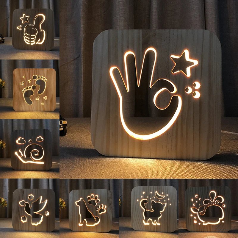 3D украшение Настольная лампа детская деревянная собака кошка лапа ...