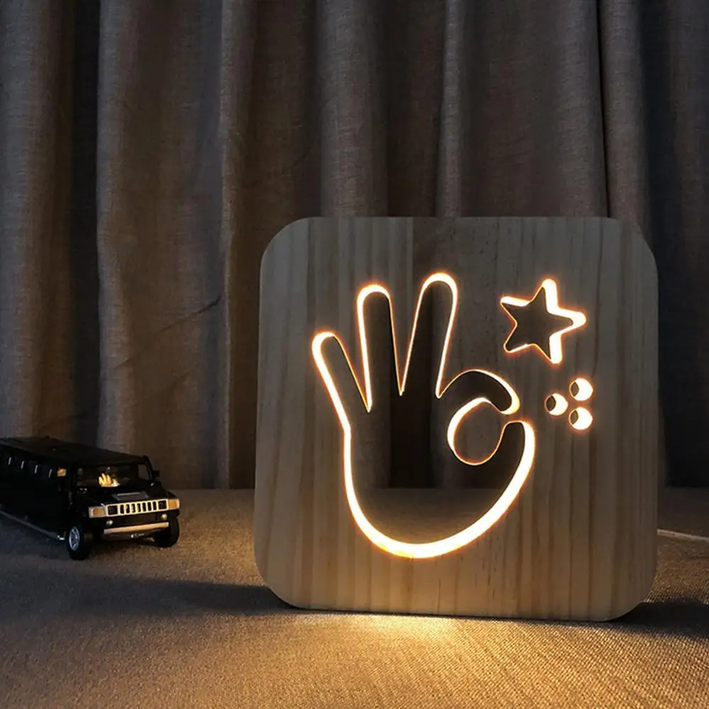 Светодиодная Подарочная лампа, креативный ночник с USB, деревянная ...