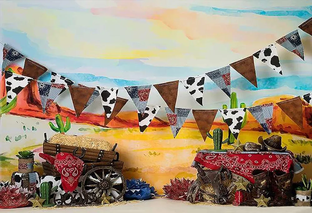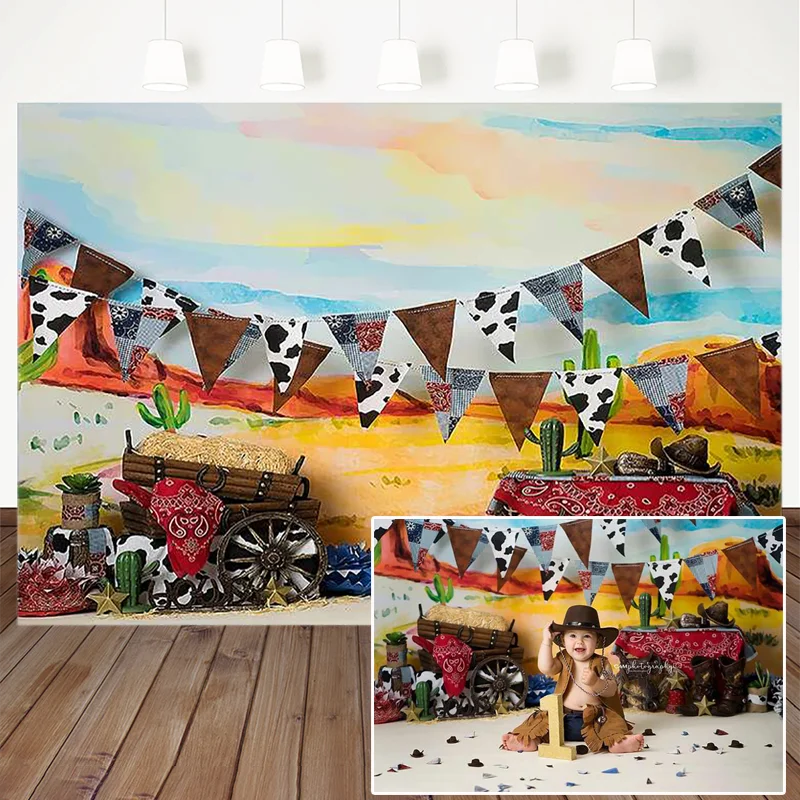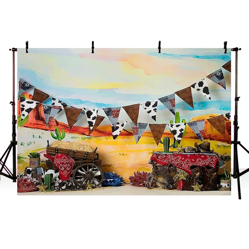 Фон для фотосъемки новорожденных Уэст ковбой пустыня сена кактус Детские Вечерние Декорации для дня рождения