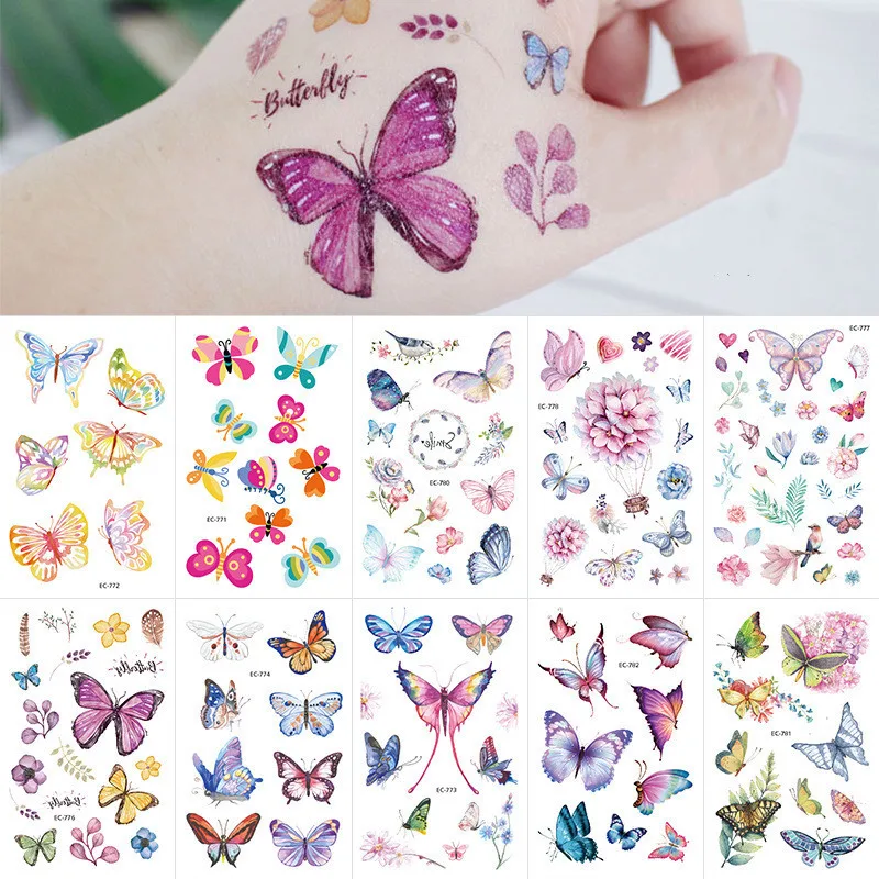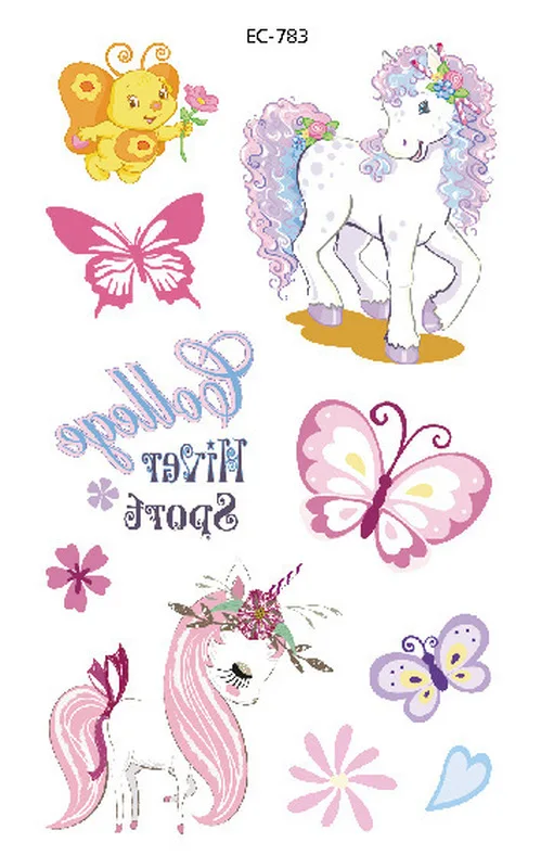 Мультфильм Единорог бабочка татуировка наклейка для детей подарок на день рождения милый имитация татуировки Детский боди-арт водостойкие временные татуировки