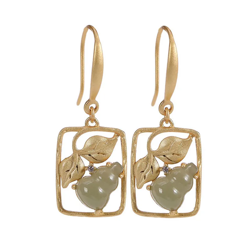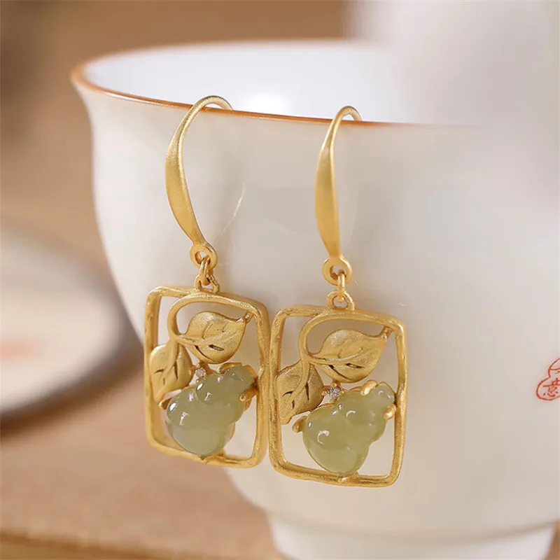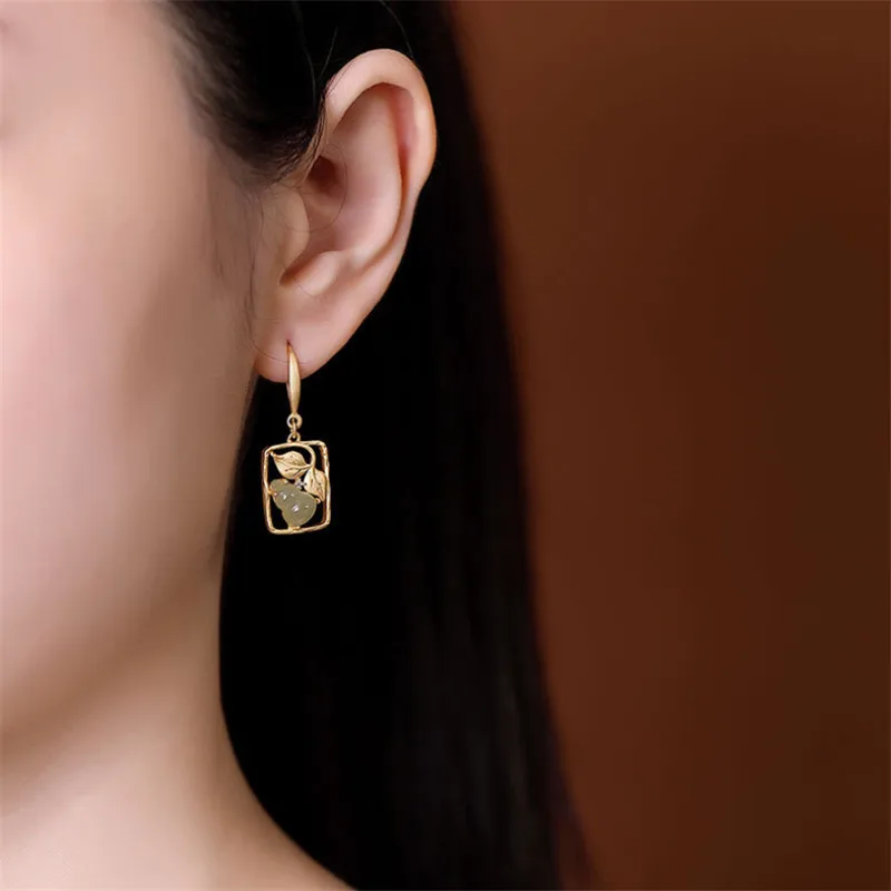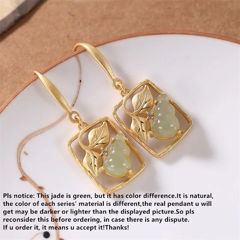 Женские серьги из серебра 100% пробы, с натуральным нефритом