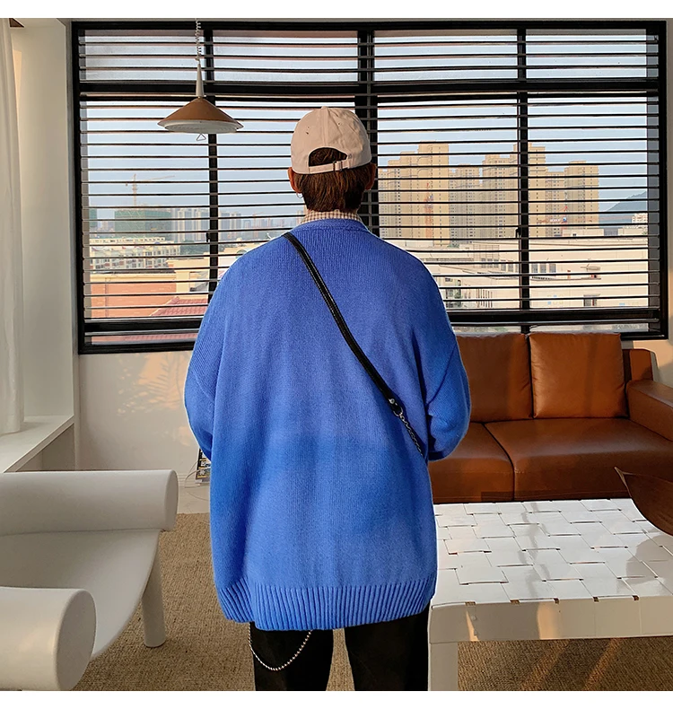 Пуловер мужской вязаный, оверсайз, модные свитера, осень, 2021