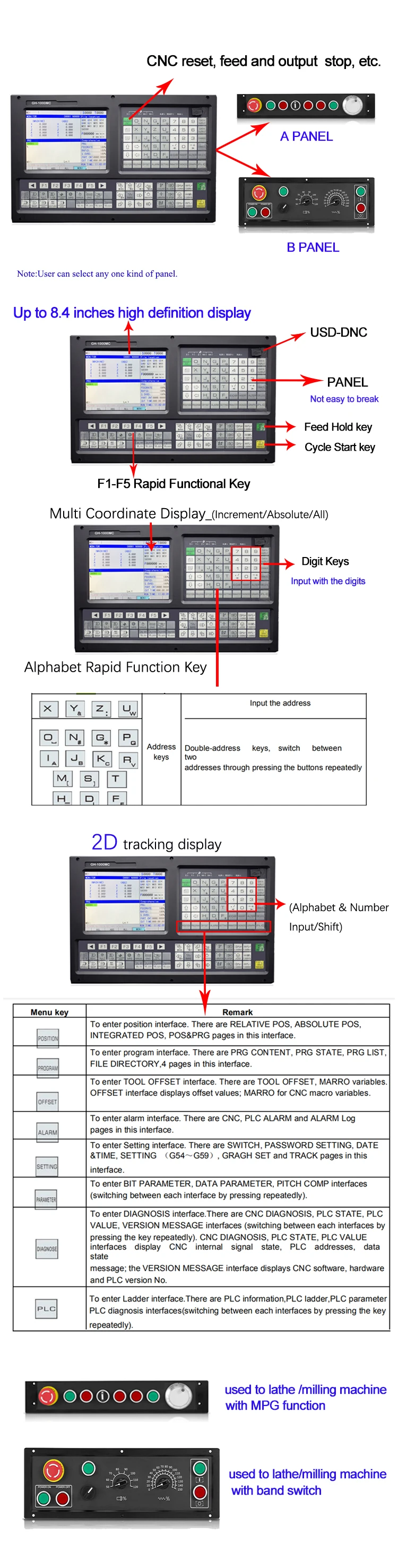 Фрезерный контроллер с ЧПУ GH-1000MC 3 оси + панель B + набор из 3 ...