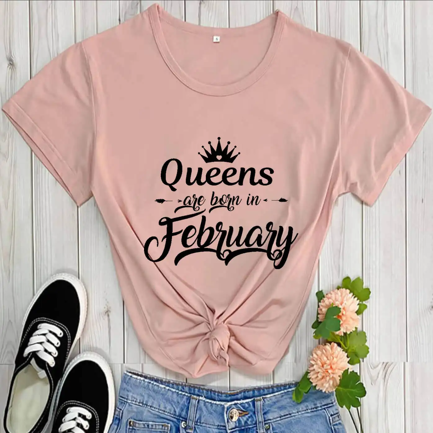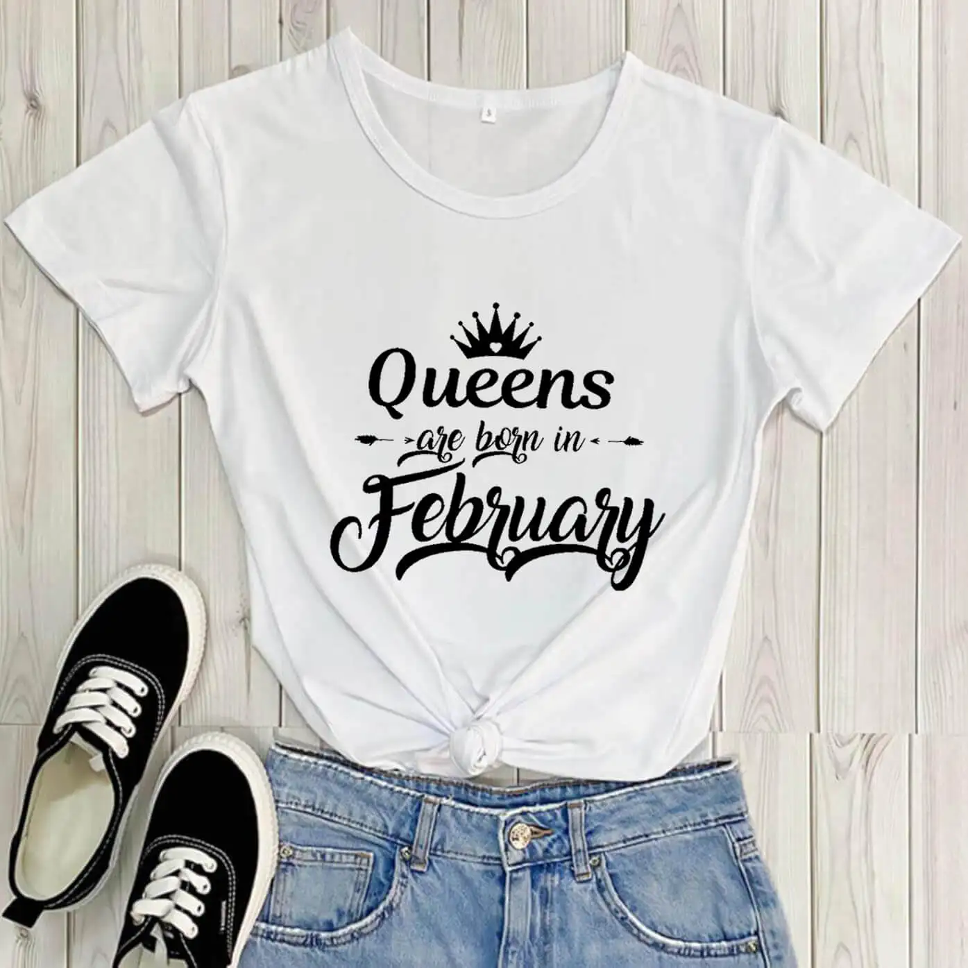 Рожденная в феврале футболка на день рождения, Новое поступление, Повседневная забавная футболка из 100% хлопка, футболки на день рождения, подарок для нее