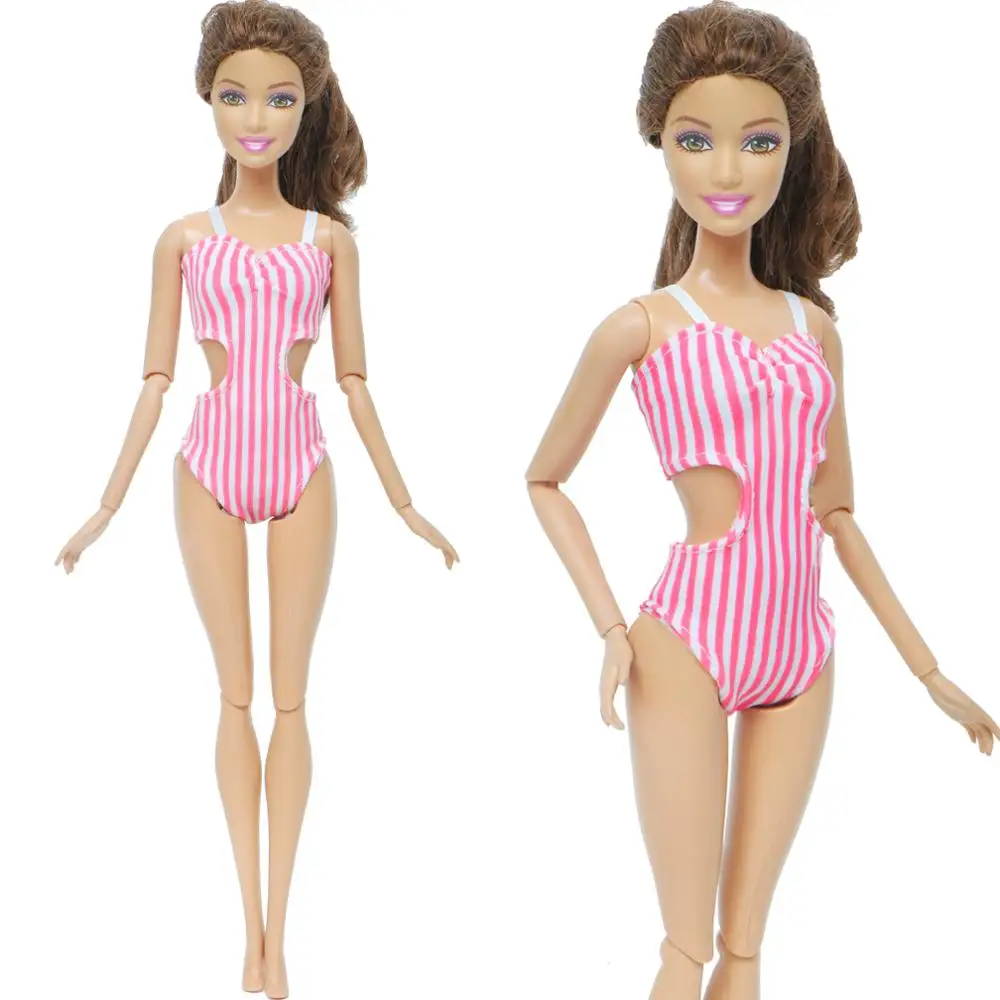 Купальник-бикини для кукол Барби, розовый, в полоску