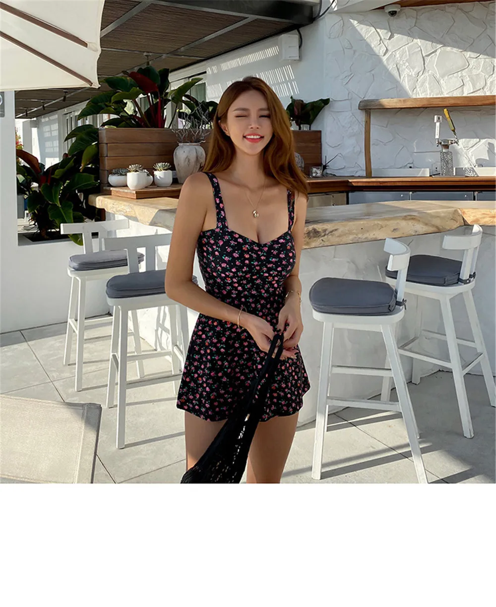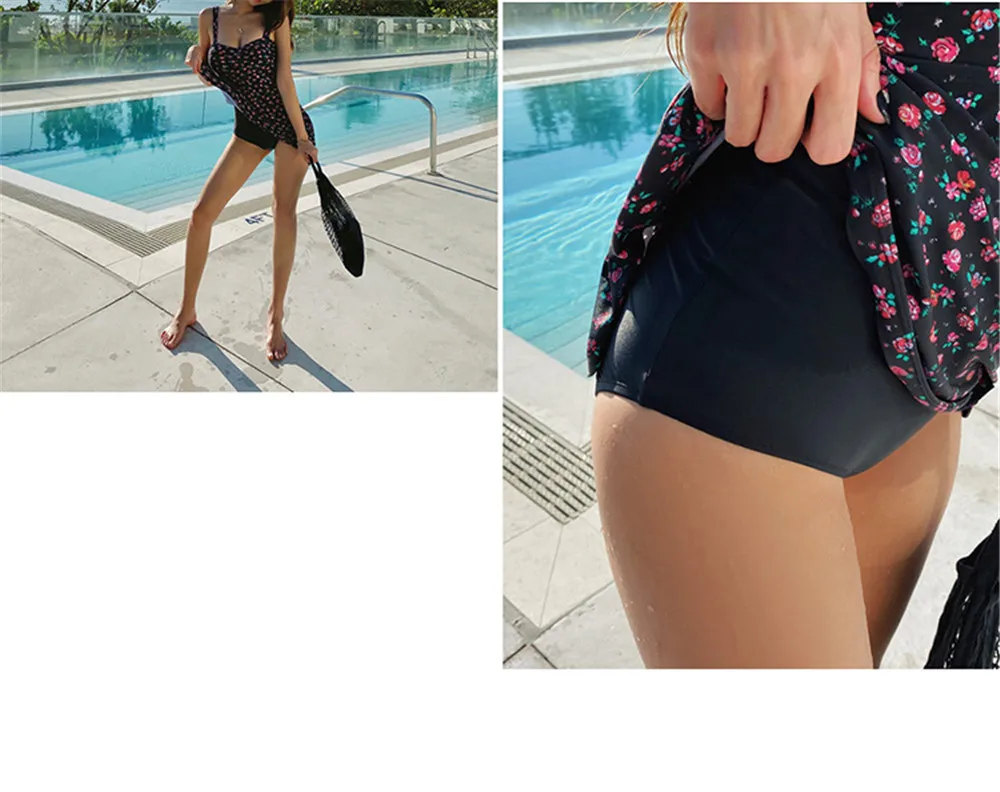 Сексуальный цельный купальник с оборками, женская одежда для плавания с цветочным принтом, юбка, монокини, купальник бандо, корейский купальный костюм с пуш-апом и открытой спиной