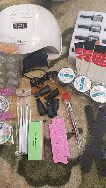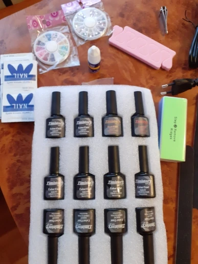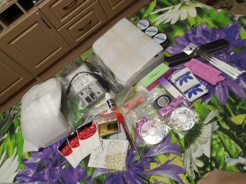 Я чисто побаловаться взяла(хобби новое), по этому не судите строго фотки Пришло всё, что в описании. Из минусов:некоторые флаконы протекают(и при транспортировке, и при хранении), уф гели два прозрачных, один белый(вместо одного розового), лампа не просушивает с первого раза плотный слой уф геля, ремувер странный(не снимает ничего хотя держала 15 мин в колпачке), фрезы нужны другие(те что в коплекте-бесполезны)Из плюсов: лаки хороши, лампа хороша(120), топ без липкого слоя, фреза работает, плюшки для дизайна прикольные, пилки, кисти и тд тоже хорошие. Долго не носила еще, максимум неделя, но без сколов, отслоек и тд, наращивание тоже(и на типсы, и на формы), все крепенько. Для учения и баловства-покатит, но для работы только лаки и лампа хороши, остальное лучше докупить более качественное. Не хватает хорошего ремувера(снятие покрытия), салфеток. Итог: за такой набор товара, который предлагает продавец, своих денег не жалко. Я довольна, есть, конечно, свои нюансы, но оно того стоит.