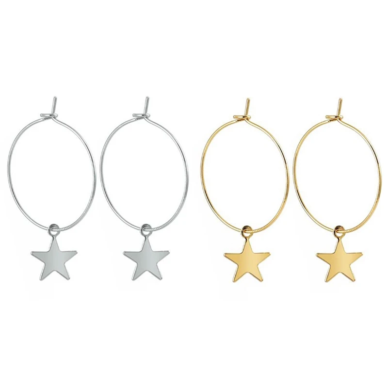 Минималистичные маленькие серьги-кольца в виде пятиконечной звезды,...