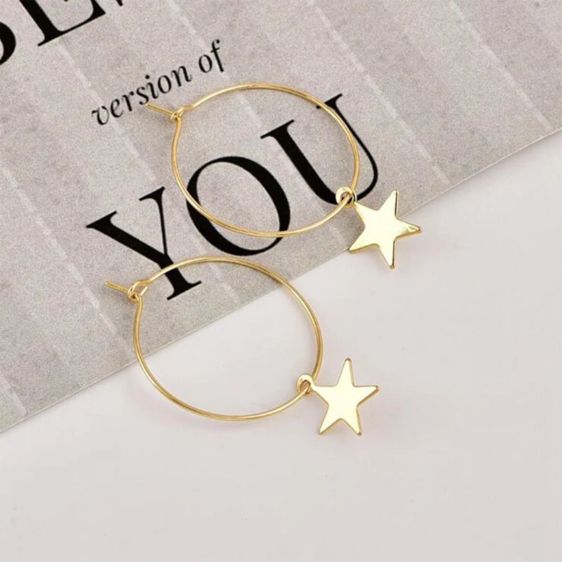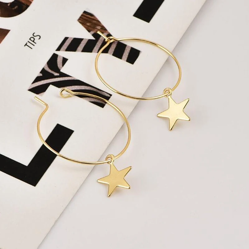 Серьги-подвески в Корейском стиле женские, висячие ювелирные украшения для ушей, круглой формы в форме звезды, цвет под золото, геометрический дизайн, свадебная бижутерия, аксессуары