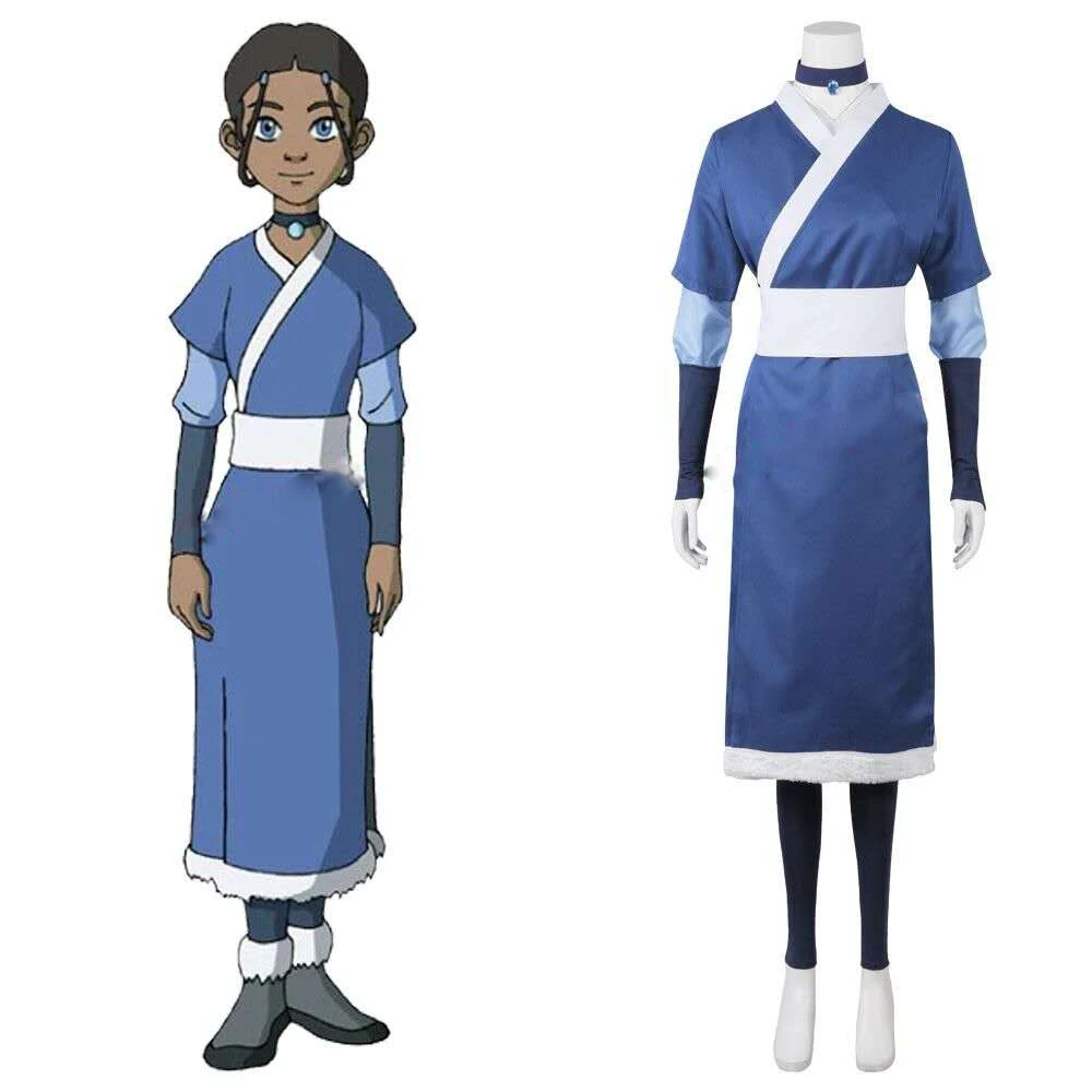Аватар Последний аirbender Косплей Katara Косплей Костюм синий костюм униформа на заказ