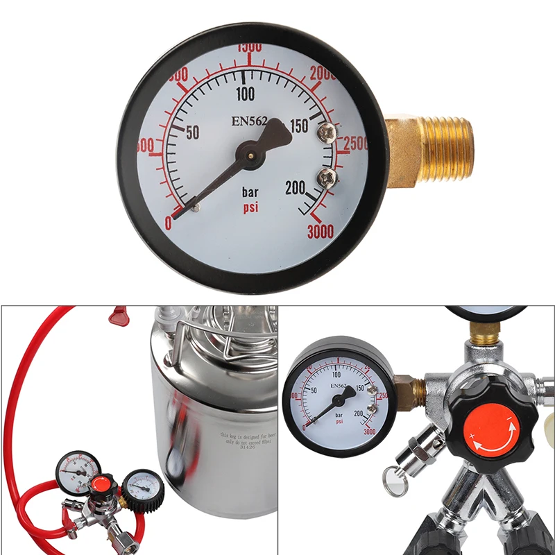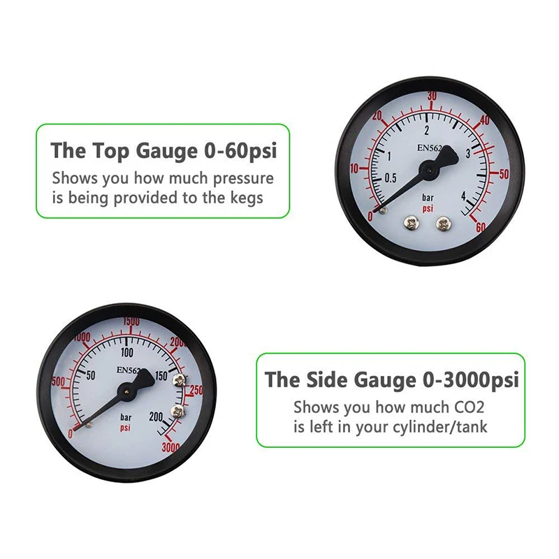 Co2 Regulator Gauge Replacement, 0-60psi 0-3000 psi Co2 Pressure Gauge with 14"NPT Thread for Homebrew CGA320W21.8 Regulator