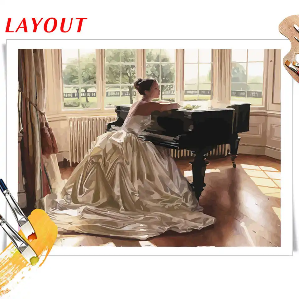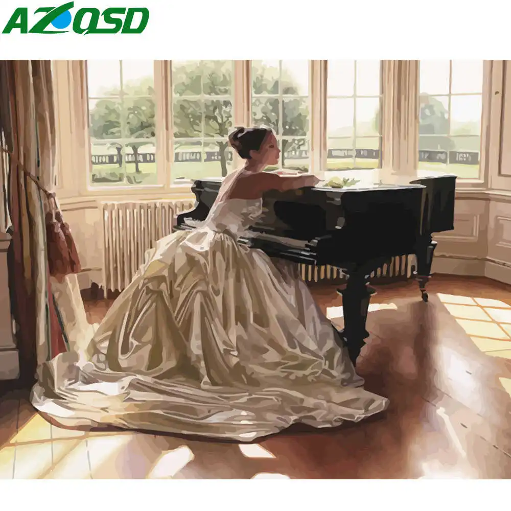 AZQSD масляная краска ing по номерам девушка фортепиано краска ing по номерам портрет домашнее украшение подарок Diy Ручная Краска Набор Холст