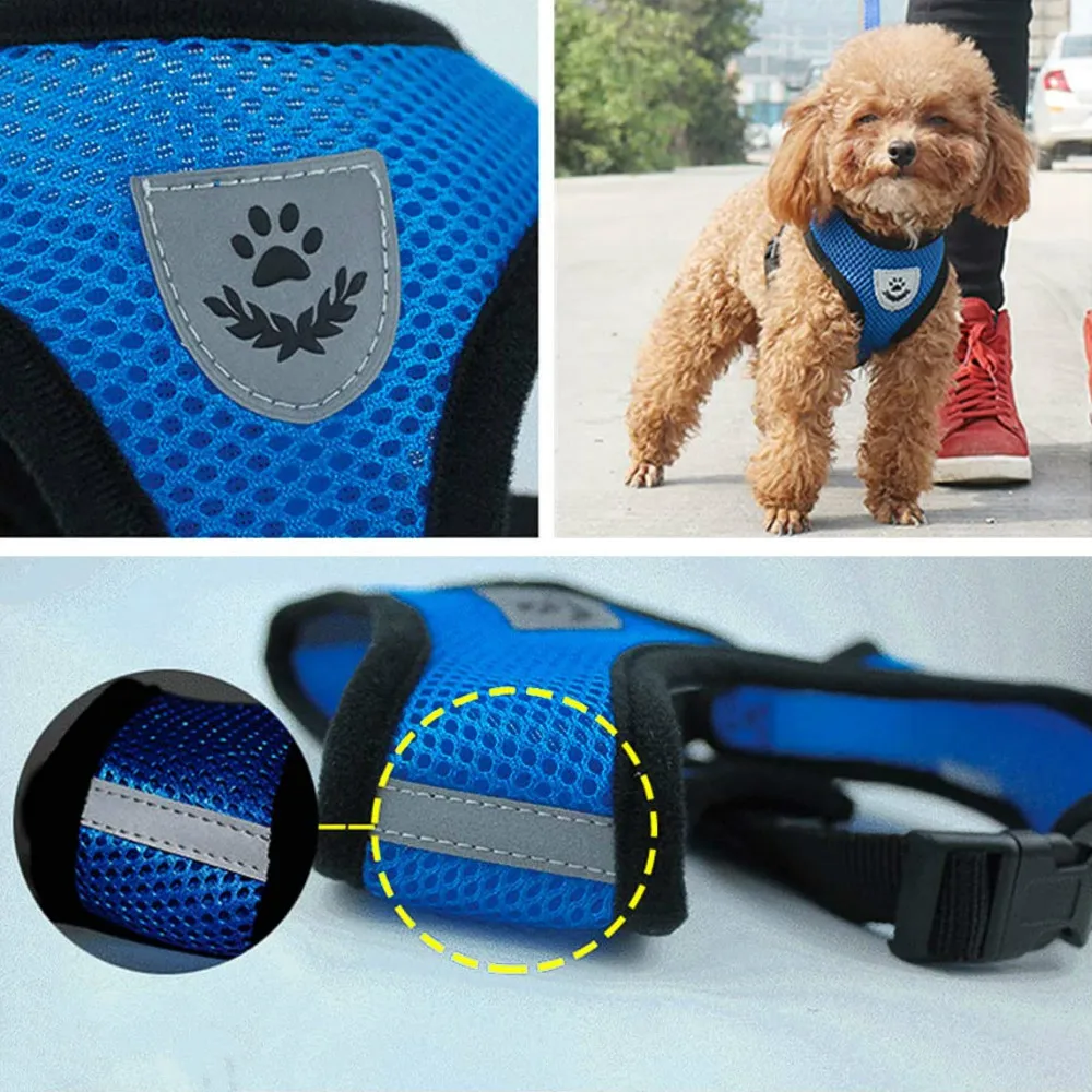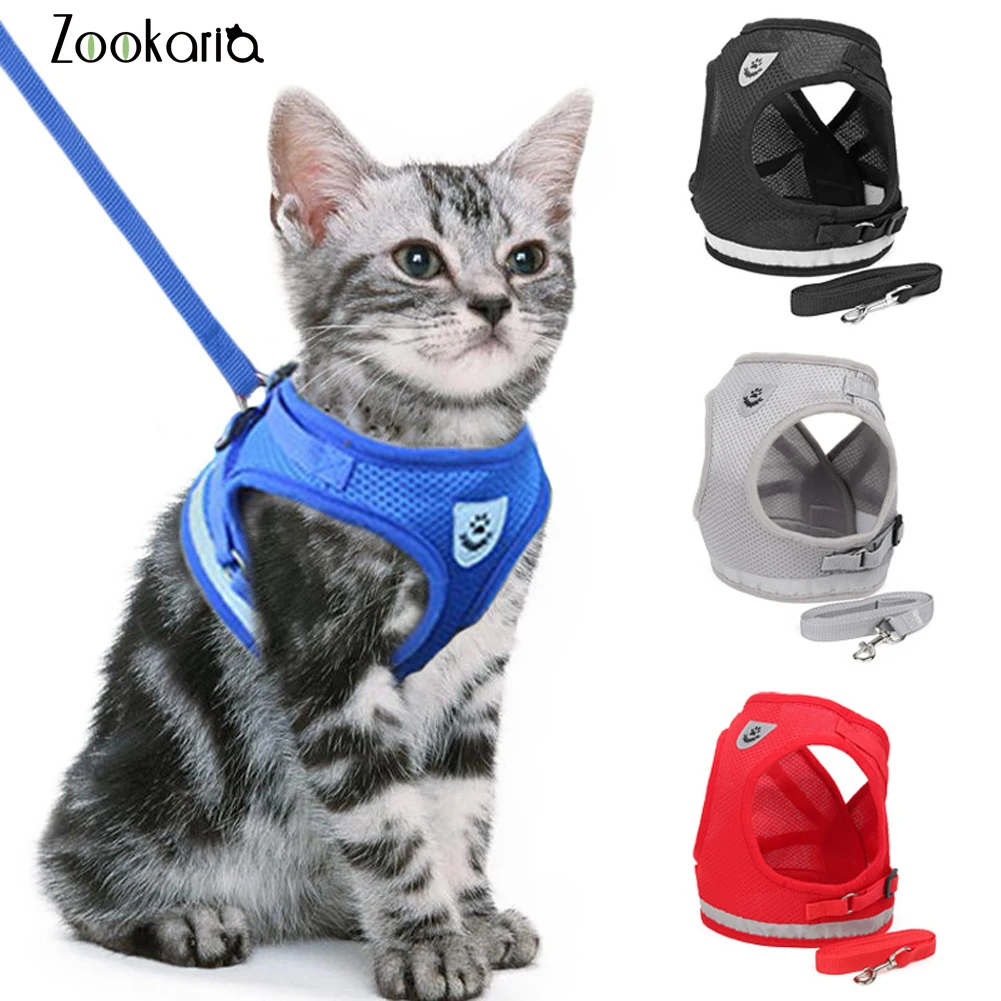 Регулируемая шлейка-жилетка для кошек и собак, прогулочный поводок для щенков, сетчатый ошейник для маленьких и средних собак, кошек, домашних животных