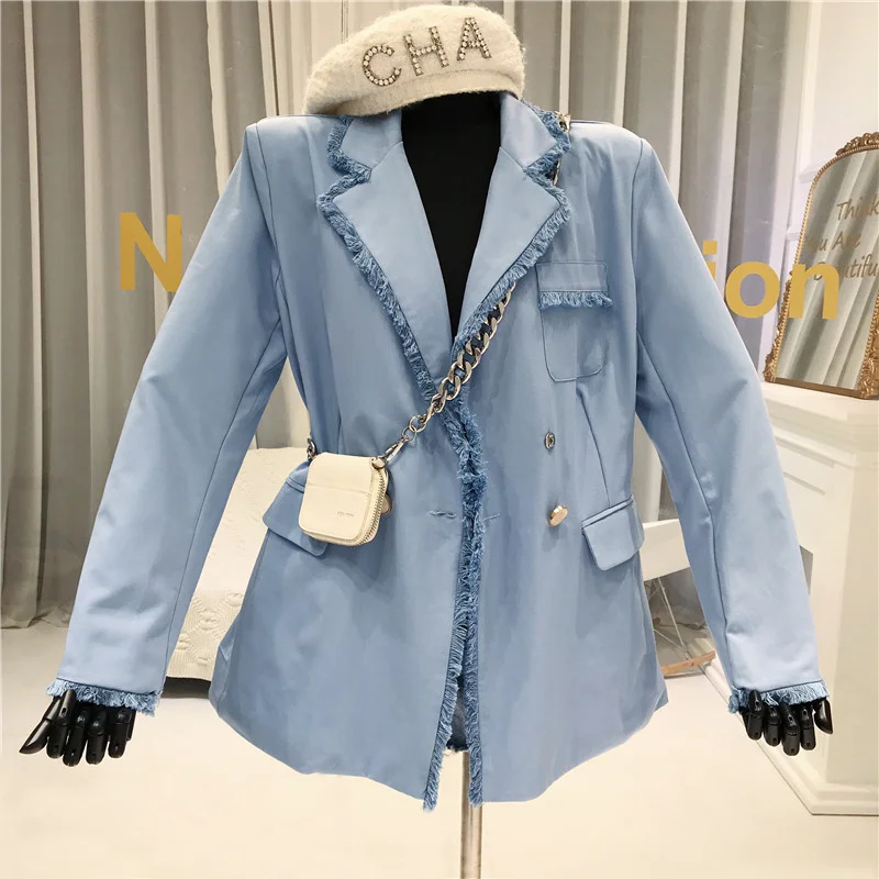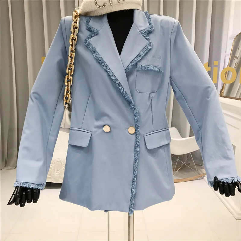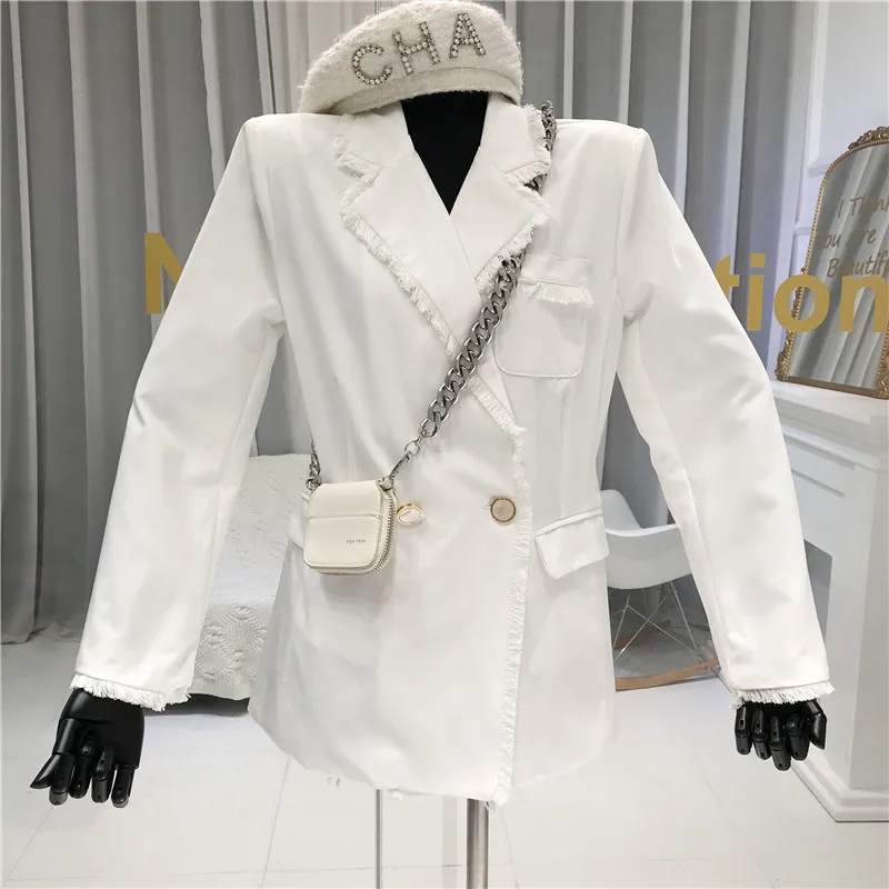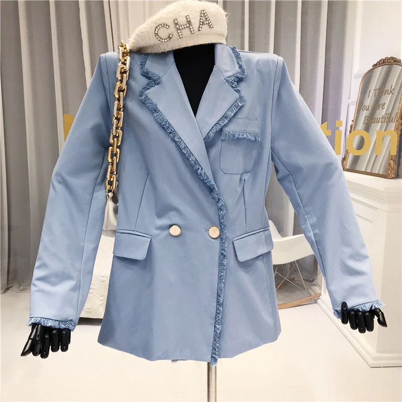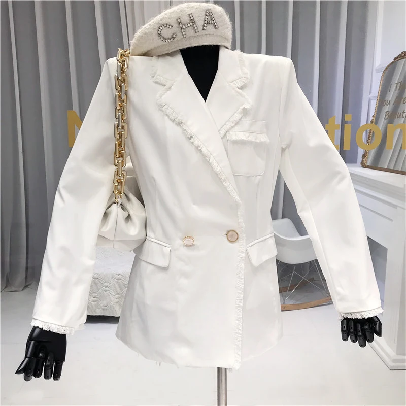 Женский блейзер с кисточками ALPHALMODA, элегантный однотонный Повседневный Блейзер на осень 2020