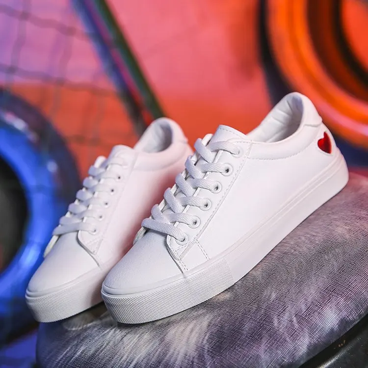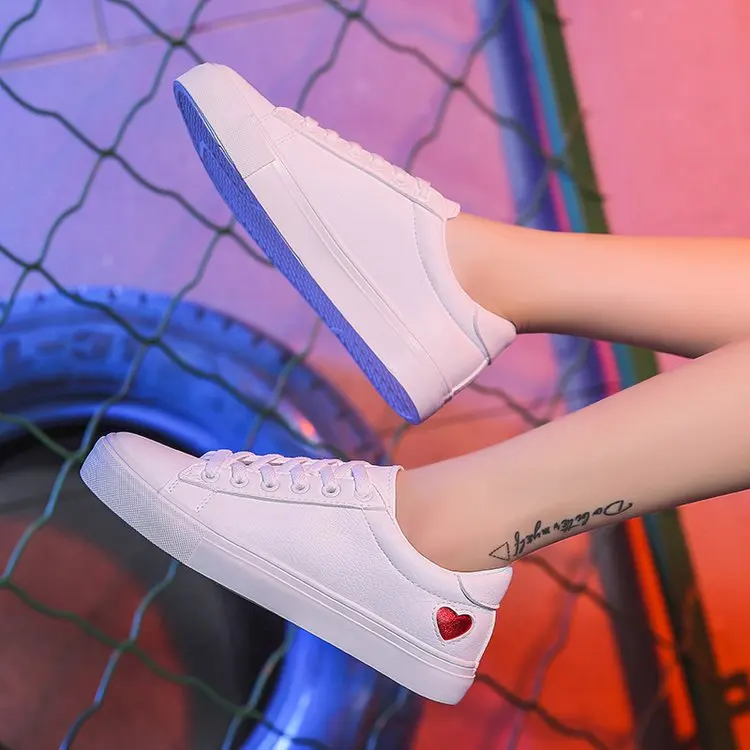 Женская парусиновая обувь, на плоской подошве, с сердцем, на шнуров...