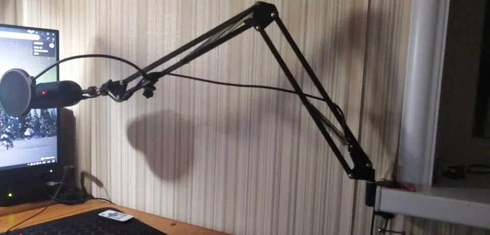 Наверное для своих денег очень хорошо. Но крепление к столу может стол повредить, поэтому лучше что-то туда подложить. Также очень слабый кронштейн для паука + микрофона akg не подходит особо. Не выдерживает и тупо падает. Но я нашла угол при котором всё же можно нормально использовать, вроде не падает.