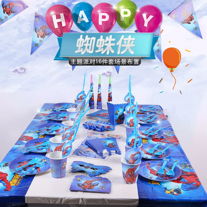 Марвел, Человек-паук, праздничные принадлежности, Комплект салфеток, чашка, нож, вилка, ложка, Человек-паук, украшение для дня рождения, для детей