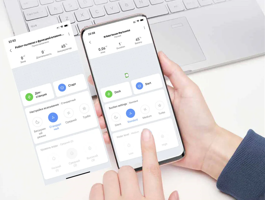 В приложение MIHOME встроено несколько языков, вы можете выбрать Популярные языки для более удобной работы по своему усмотрению (Доступен Английский Голосовой пакет), запустить одним кликом, переключить режимы, просматривайте ход очистки в реальном времени.