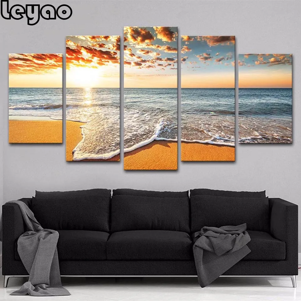 Алмазная живопись, полноразмернаякруглая романтическая пляжная Ланд...
