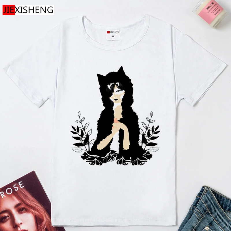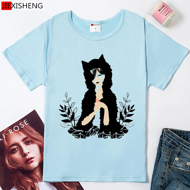 Женская футболка с принтом большого рта и кота, лето 5 видов цветов...