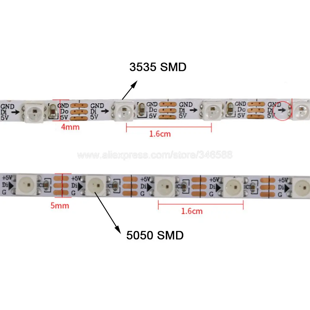 Светодиодная лента WS2812B, 5 В, 60 светодиодовм, 4 мм, 3535 SMD 5 мм, 5050 SMD, узкая ширина, печатная плата, RGB Пиксельная лента, индивидуально Адресуемая IP20