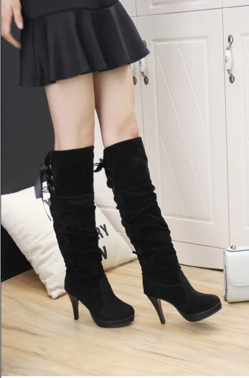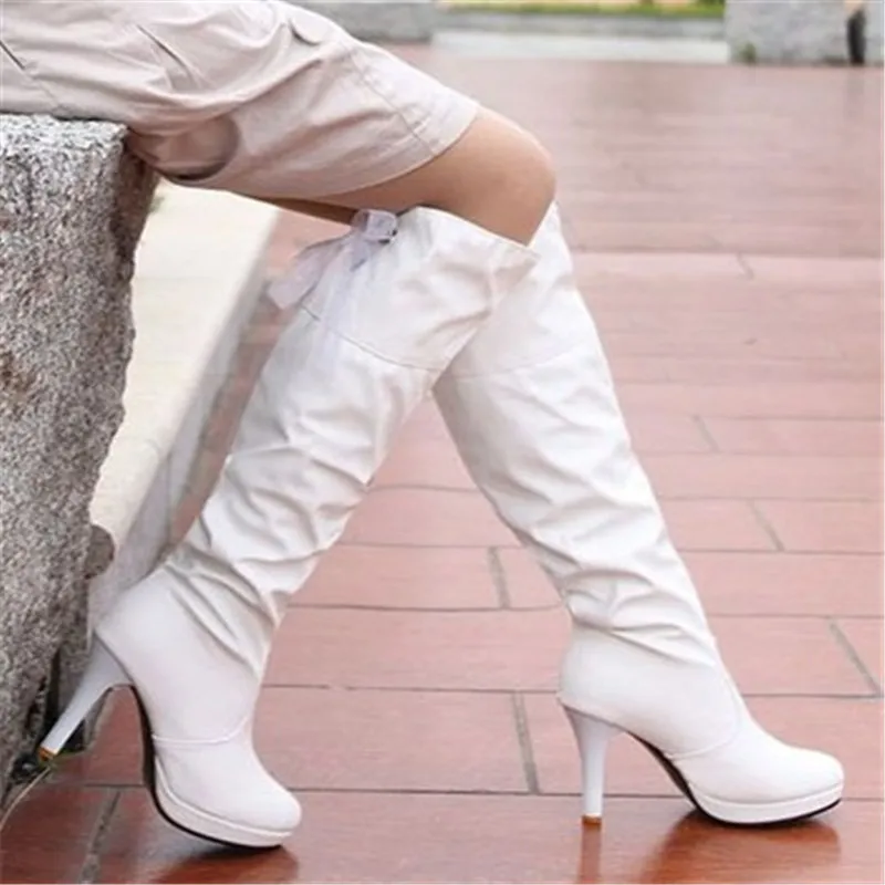 Женские высокие сапоги; Сезон осень-зима; Теплые кожаные сапоги до колена на платформе; Пикантные женские сапоги на платформе и высоком каблуке; Botas Mujer; Цвет черный, белый