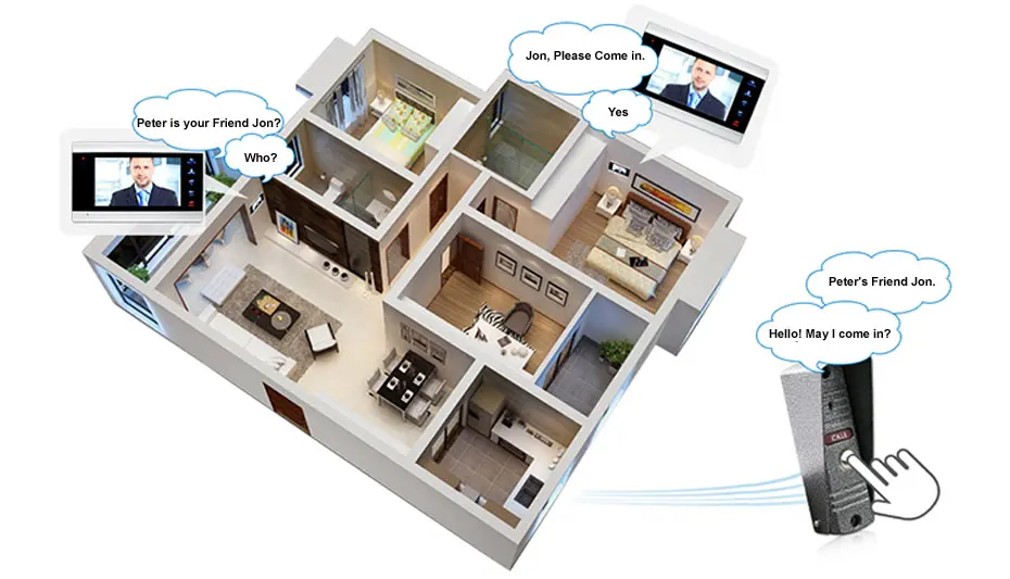 Этот товар без использования рук и доступен для двусторонней связи. Он поддерживает связь между внутренним монитором и наружной камерой, но также поддерживает связь между монитором и монитором.