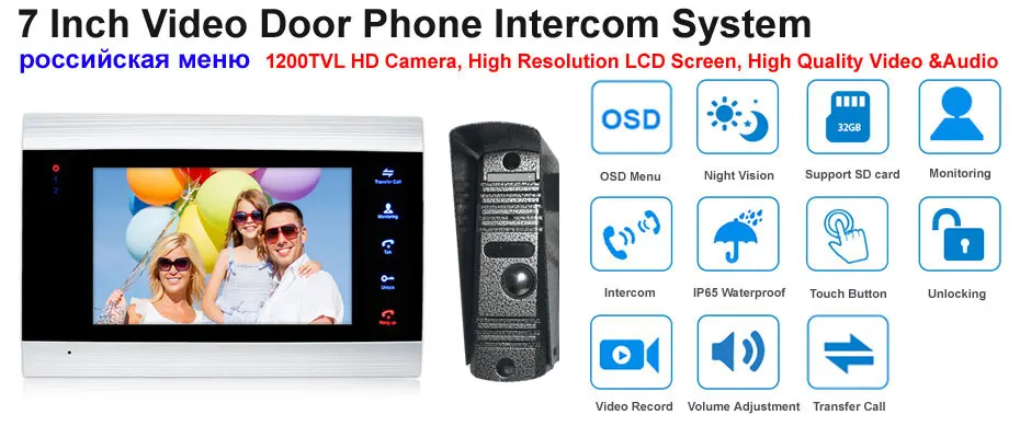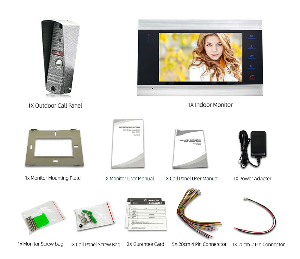 Этот набор для видеодомофона 7 дюймов поддерживает подключение с PIR детектором, аналоговой камерой и электронным замком. Он может защитить ваш дом и собственность во всех аспектах.