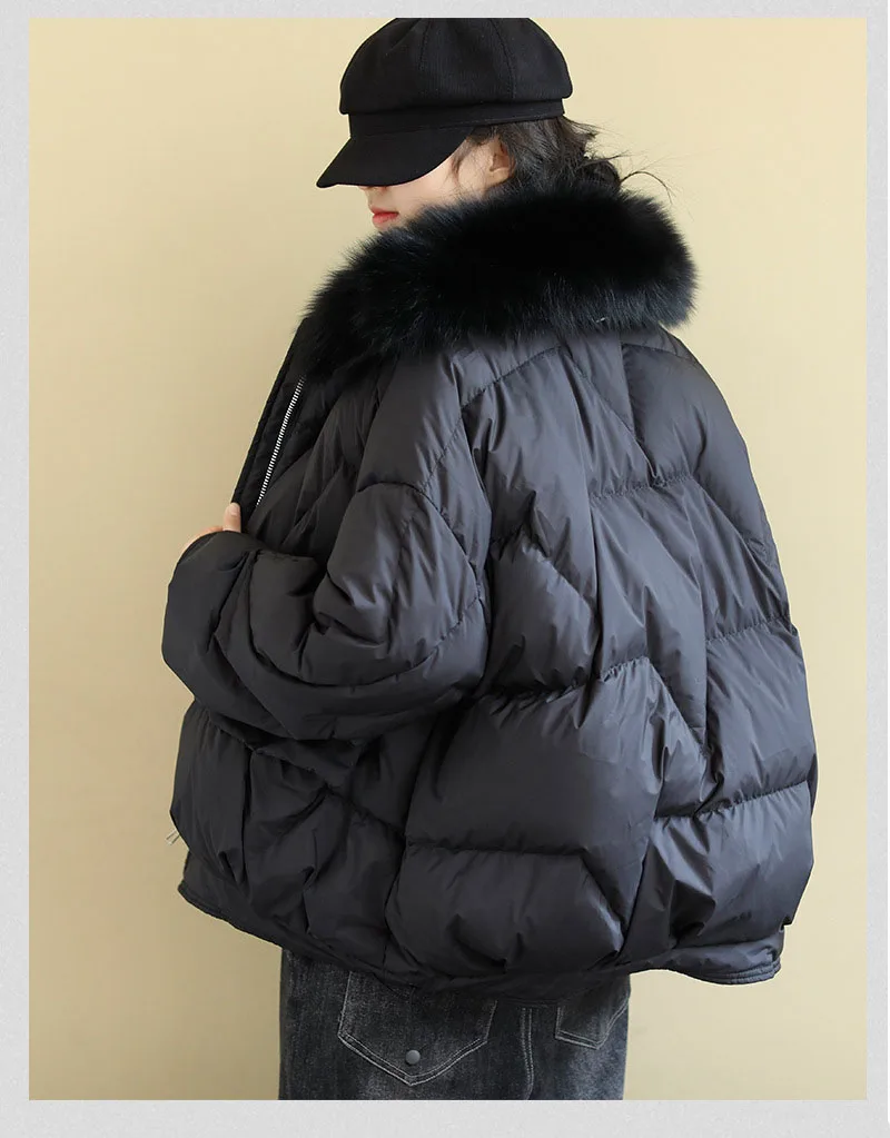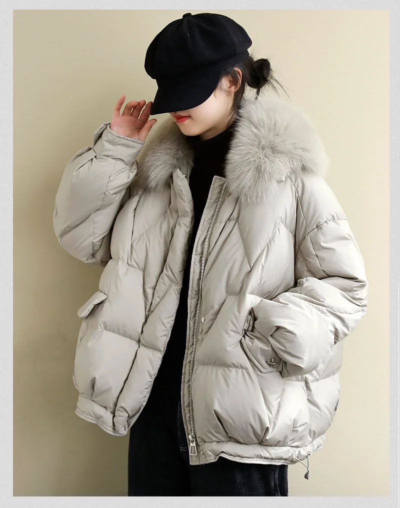 Женский пуховик Schinteon, зимняя Свободная куртка оверсайз с воротником из 2020 натурального Лисьего меха, 100%