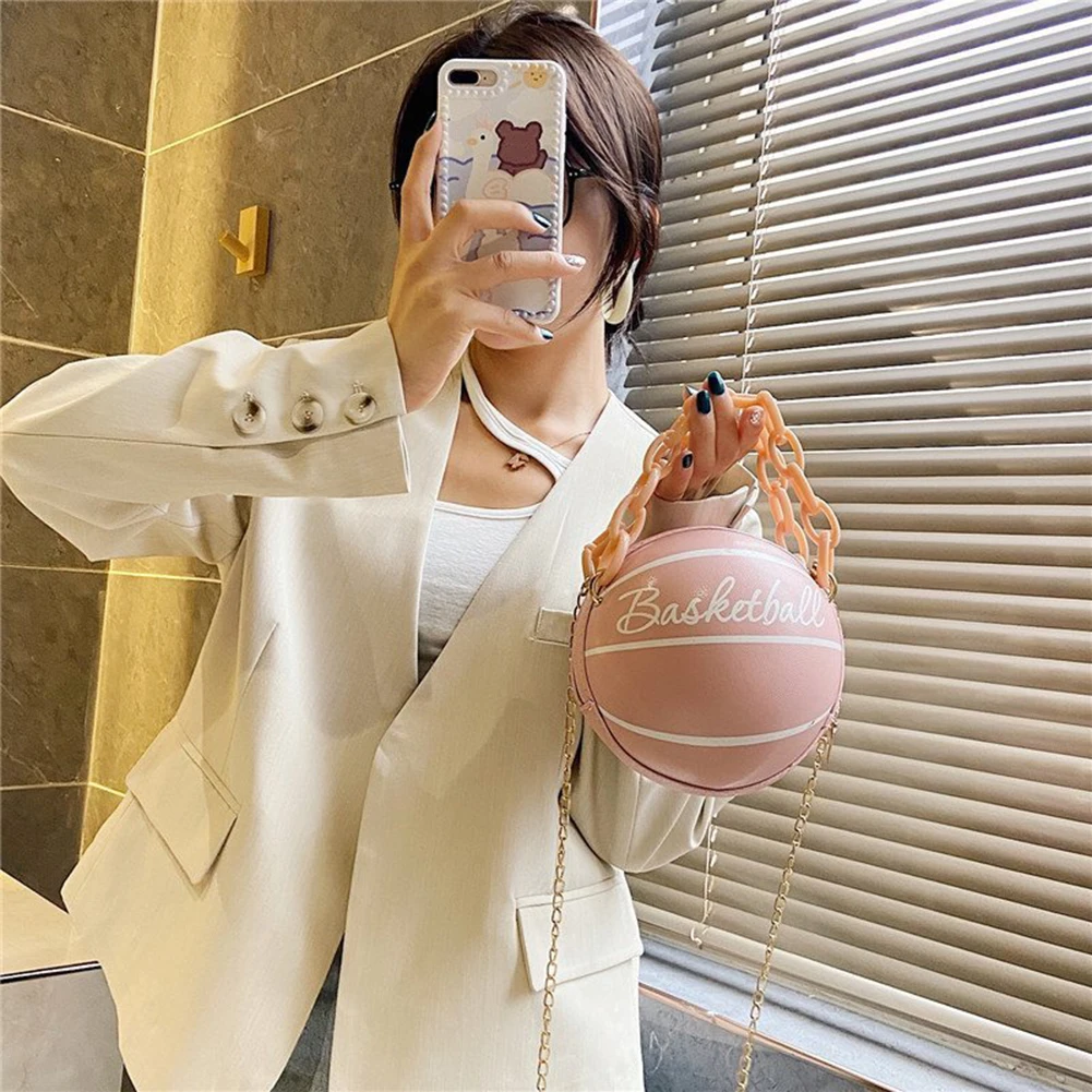 Сумка-кроссбоди женская, баскетбольная, с акриловой цепочкой, круглая