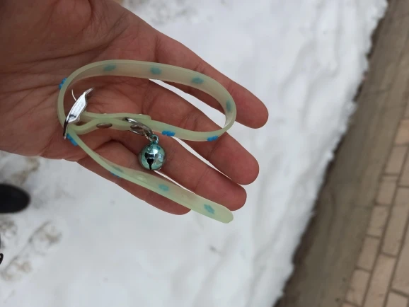 Прикольный ошейник на кота.Мы заценили,кот нет) Светится даже при небольших сумерках и колокольчик звенит .Брала за 75р дороже он и не стоит.Спасибо продавцу.
