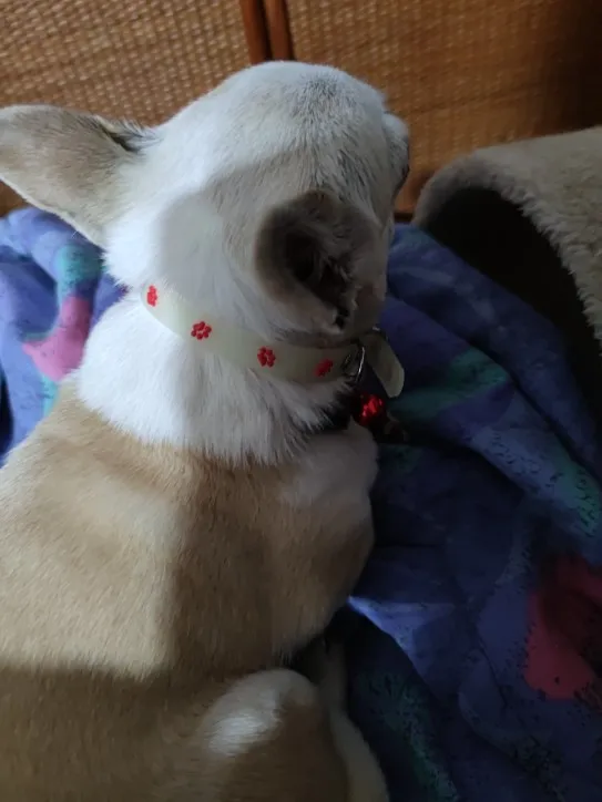 Отлично, это идет слишком хорошо для моего щенка чихуахуа 3 с половиной месяца. Выглядит очень фосфоресцентно, я люблю это!