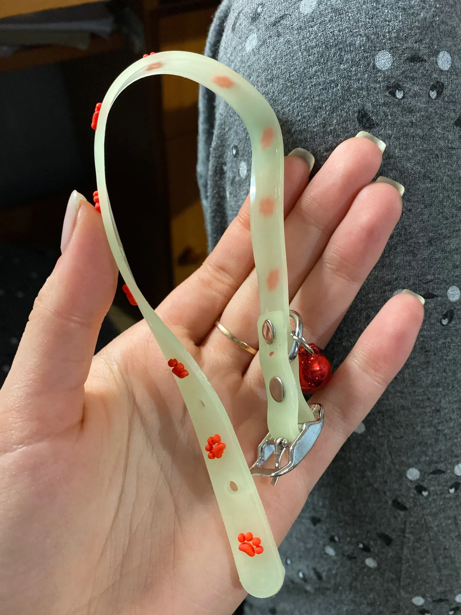 Силиконовый ошейничек, с бубенчиком. в темноте светится.