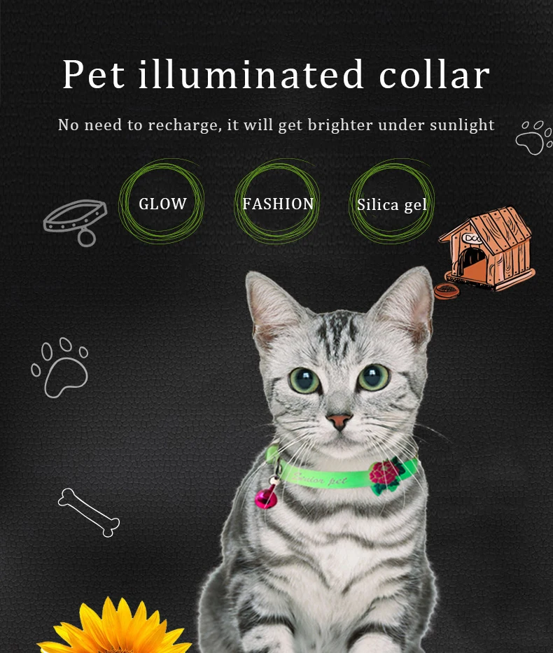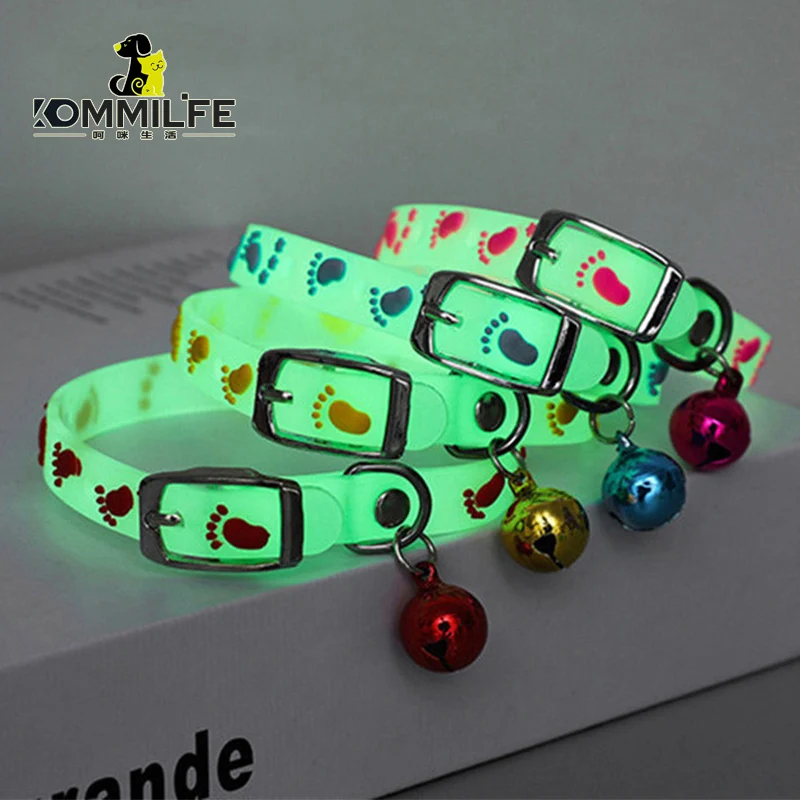 Светящийся ошейник для собак и кошек, люминесцентный силиконовый ошейник с колокольчиком, кольцо на шею для собак, аксессуары для кошки, собаки