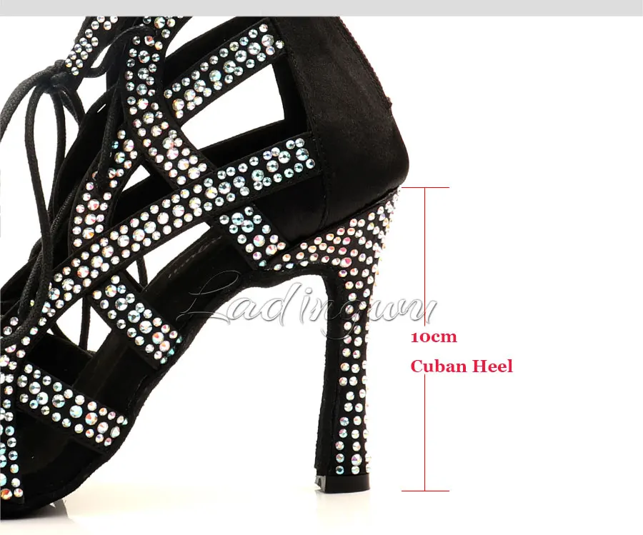 Женские туфли для латиноамериканских танцев, черные, стразы