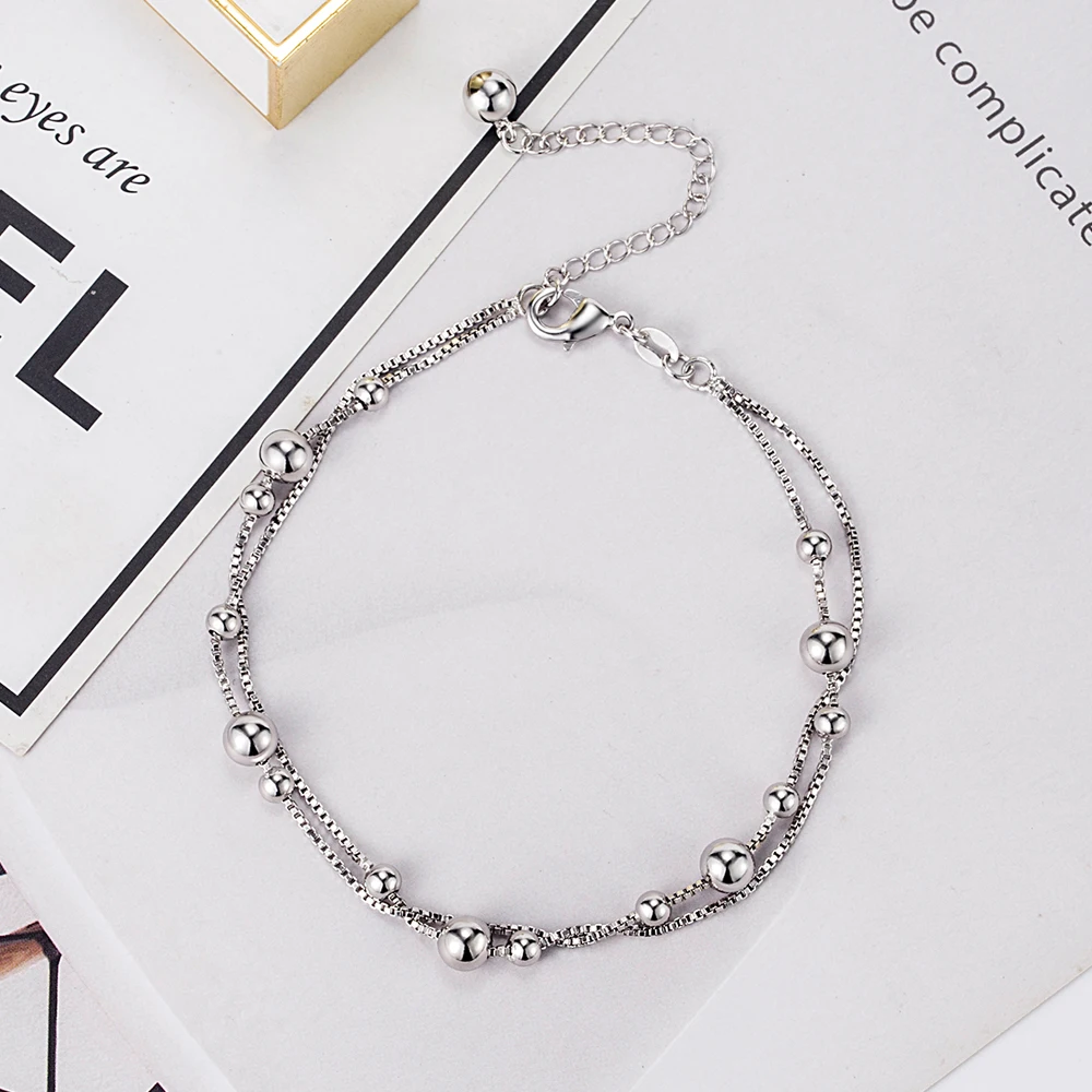 Браслет-анклет женский из стерлингового серебра 100% пробы, пляжный простой ножной браслет с двойной цепочкой в богемном стиле, украшения для ног на лето, 925