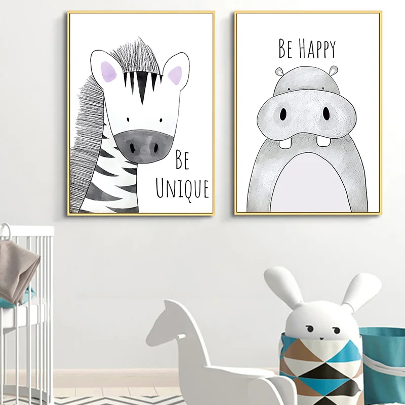 Зебра жирафа слон животное холст постер детская стена Художественна...