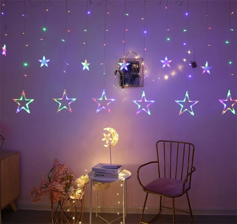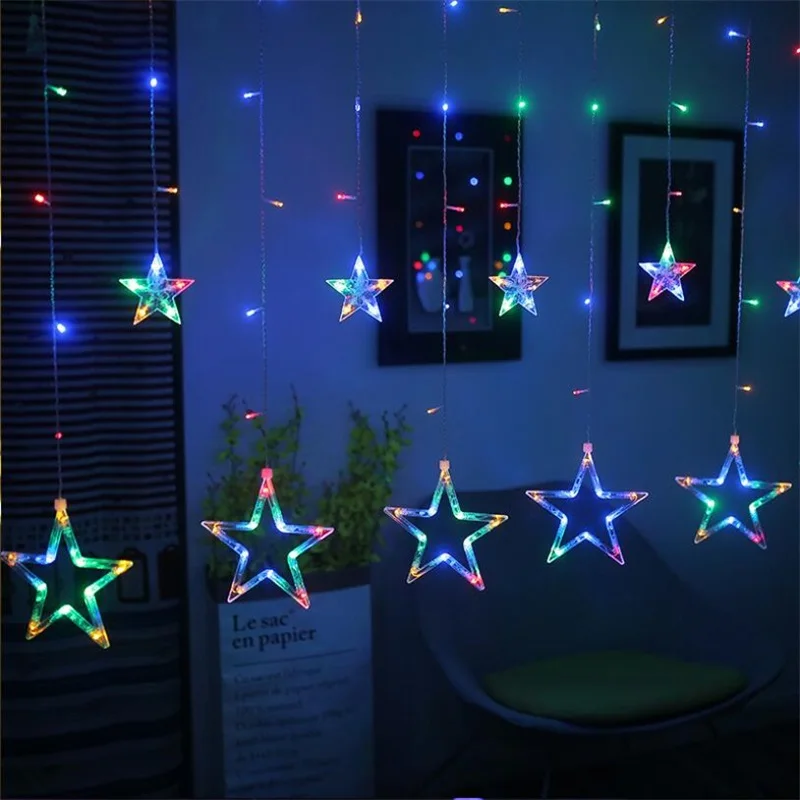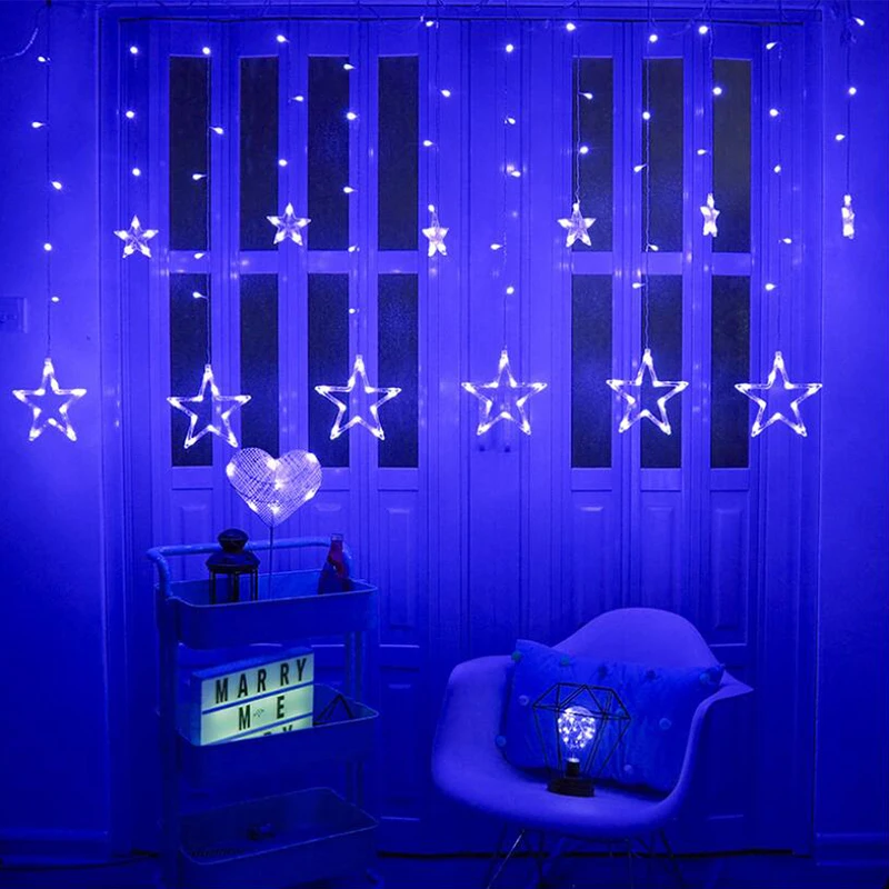 СВЕТОДИОДНАЯ Гирлянда-занавеска со звездами, 2,5 м, 220 В