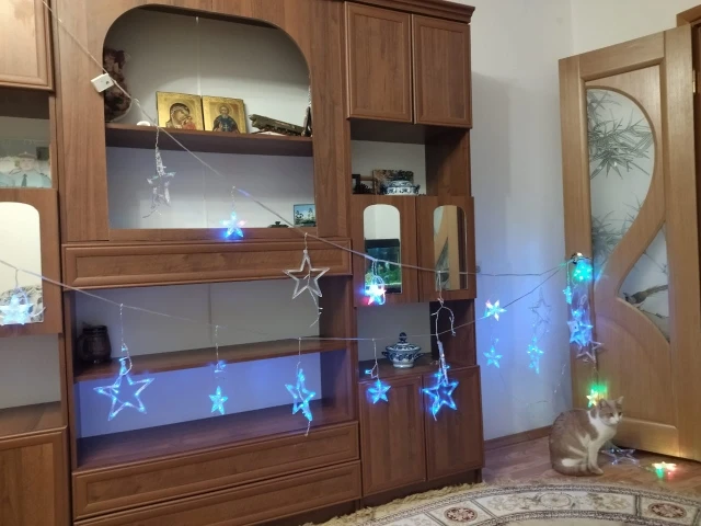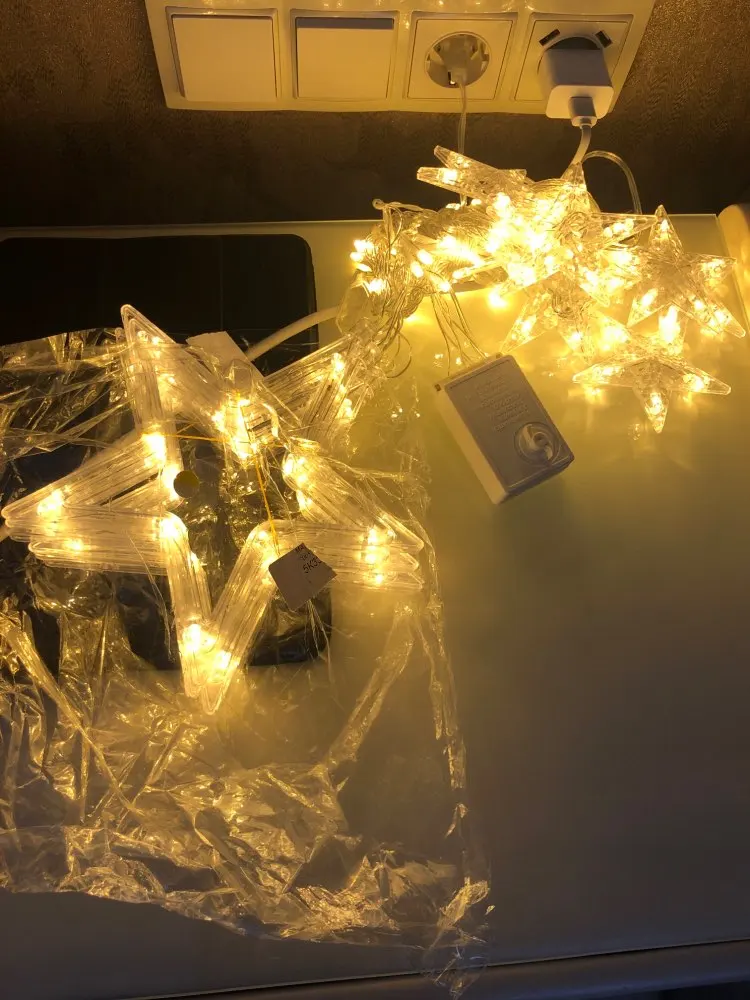 пришло очень быстро, запеленал, как кощеево яйцо) ели добралась до ламп, зато пришло все целое, и подарочек положил, прям спасибо, спасибо) перепробовали все лампы, синие для нас самые лучшие, еще лиловые красивые, но под интерьер нам не подходят. Комната прям становится новогодняя, без всяких украшений,в живую смотрятся лучше, взяла во все комнаты. Пользуемся уже 4 год будет. Все кто в моем окружении их взял, мне говорят спасибо, что нашла.Берите не пожалеете
