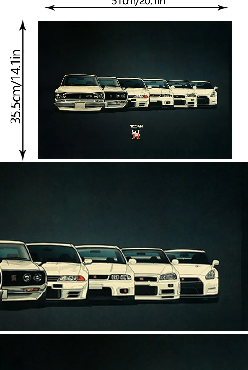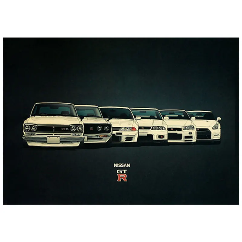 Классическая модель автомобиля GTR, постер, ностальгическая Ретро Серия крафт-бумаги, автомобиль, магазин красоты, бар, украшение дома, картина, наклейки на стену