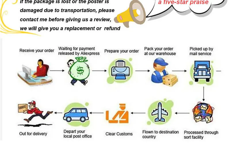 1. Если продукт, который вы получили, поврежден во время транспортировки, пожалуйста, не оставляйте нам плохой отзыв немедленно, вы можете связаться с нами, чтобы решить эту проблему. 2. Если ваше время подтверждения истекает, и вы все еще не получили товар, пожалуйста, свяжитесь с нами, мы продлим дату доставки как можно скорее. 3. Пожалуйста, не открывайте споры в течение 60 дней. Если вы все еще не получили товар через 65 дней, пожалуйста, свяжитесь с нами, чтобы решить эту проблему. Информация о продукте: 1. Материал: 150 г ретро крафт-бумага, без покрытия, не водонепроницаемая 2. Цвет: постеры 100% реальности, но из-за разного отображения изображения реальности цвет difterence, поэтому, скорее всего, получите плакаты, и вы увидите, что фотографии в цвете отличаются. Фактический относительный дисплей плаката будет слегка желтоватым 3. Погрешность в 1-2 см, измеренная вручную, находится в пределах нормального диапазона.