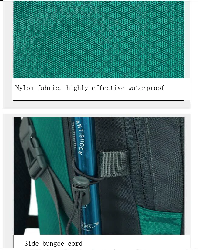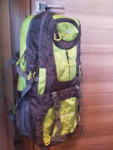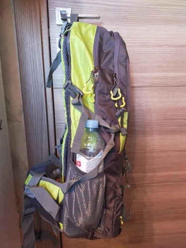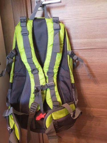 качественный походный рюкзак из нейлона с яркими салатовыми вставками. Цвет светло-серый, а не черный, как на сайте. Класс!!! Испытал в 1 дневном походе, мягкая спинка, нет жёсткой пластины вдоль спины, поэтому рюкзак имеет тенденцию сворачиваться в мешок, => нужно тщательнее складывать вещи, и боковые отделения для бутылок я бы сделал из стреч-ткани, а так все супер, лямки держат вес, в плечи не врезаются, ремни - ОК.