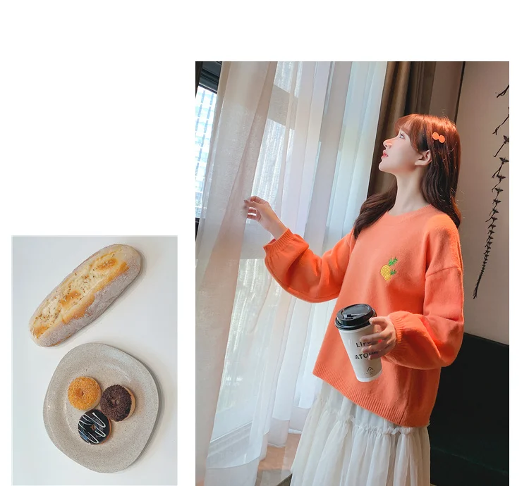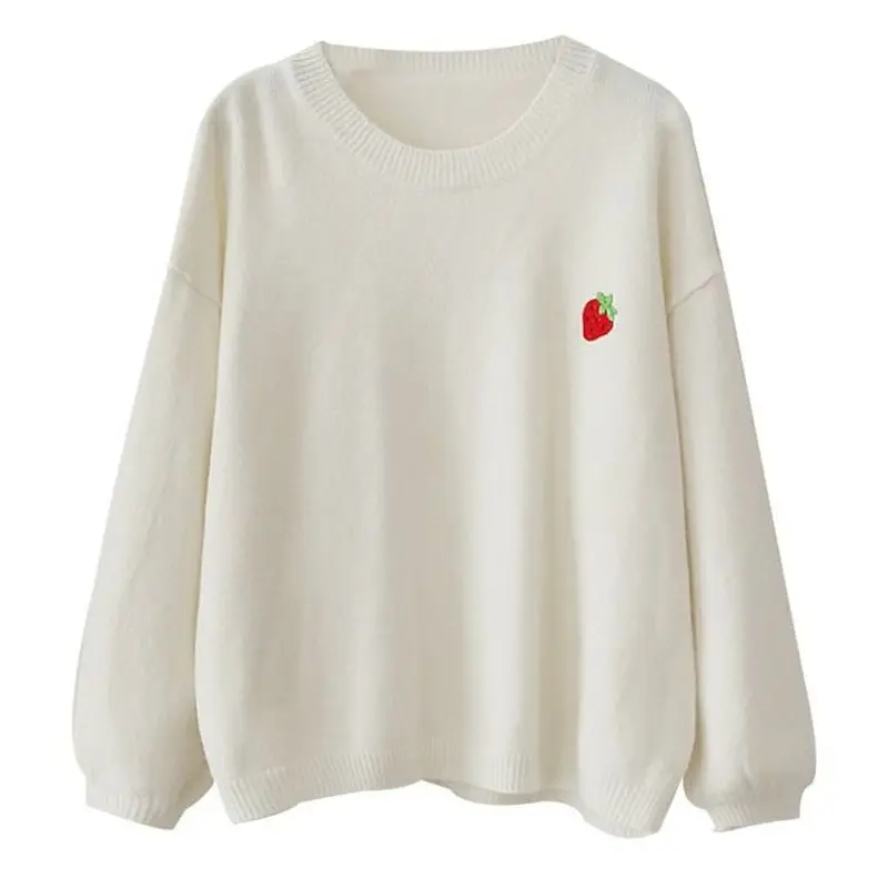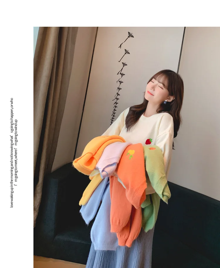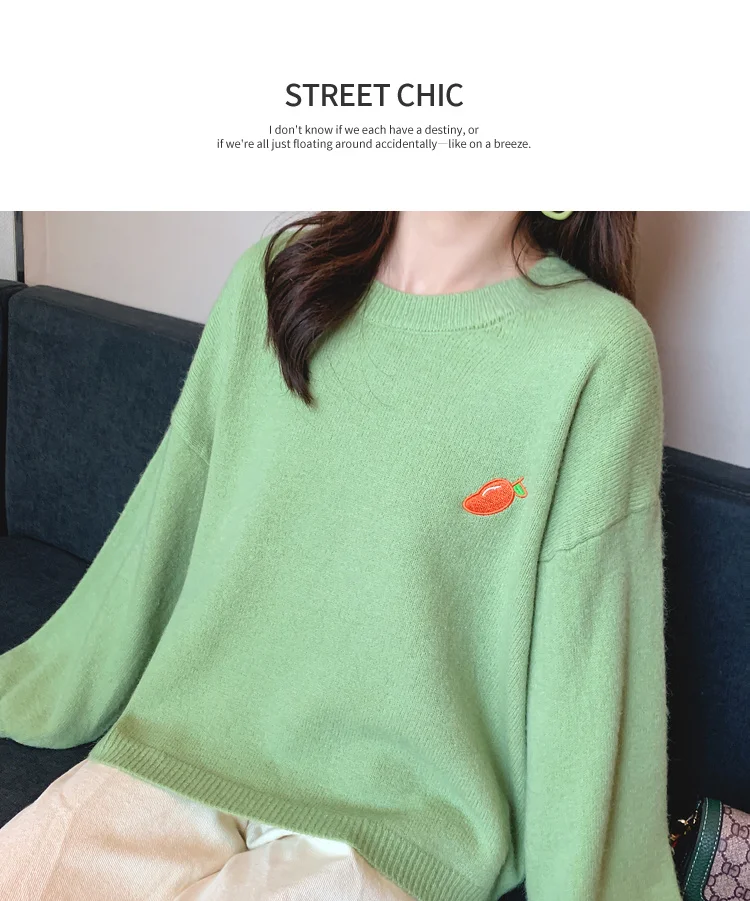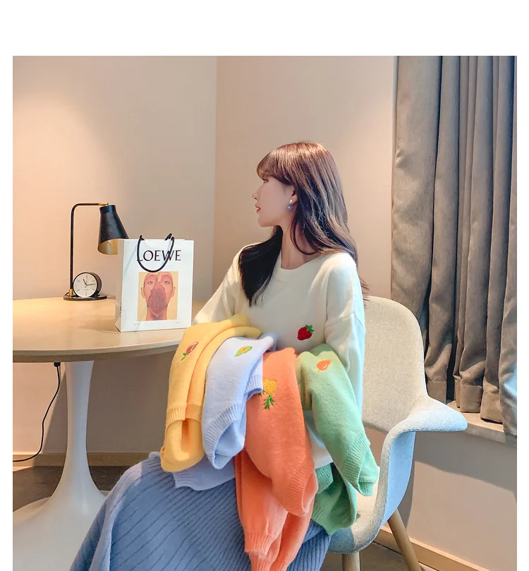 Свитер с вышивкой фруктов, Женский пуловер карамельных цветов, Женский Свободный Повседневный милый вязаный женский свитер с круглым вырезом на осень и зиму, Новинка