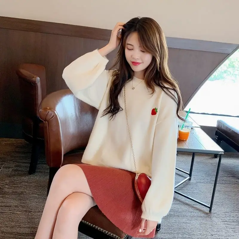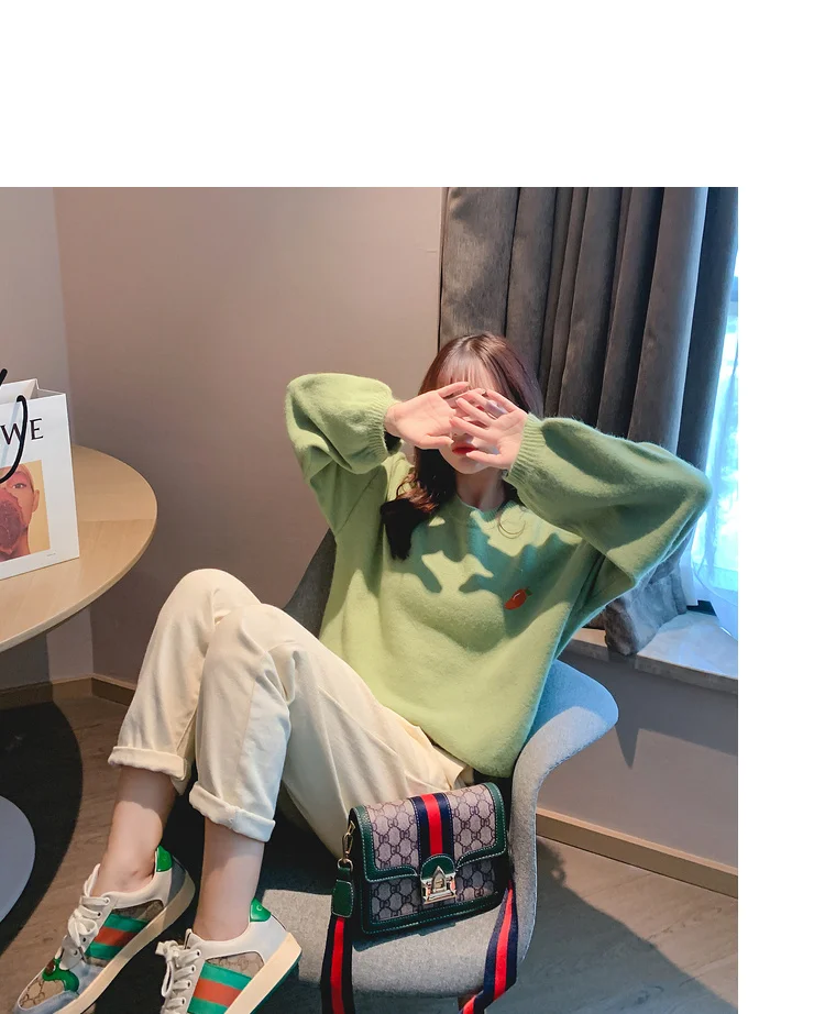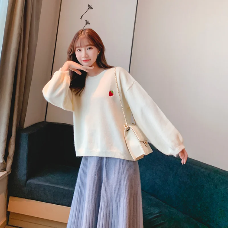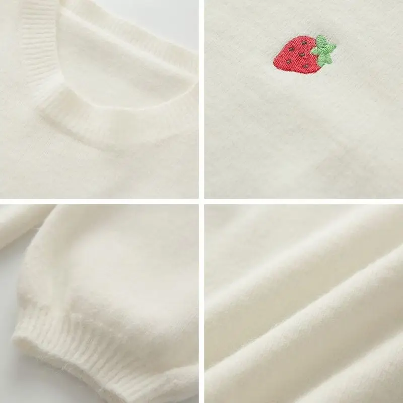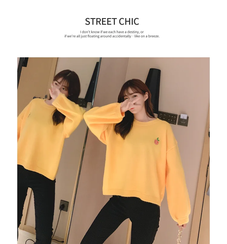 Свитер с вышивкой фруктов, Женский пуловер карамельных цветов, Женский Свободный Повседневный милый вязаный женский свитер с круглым вырезом на осень и зиму, Новинка
