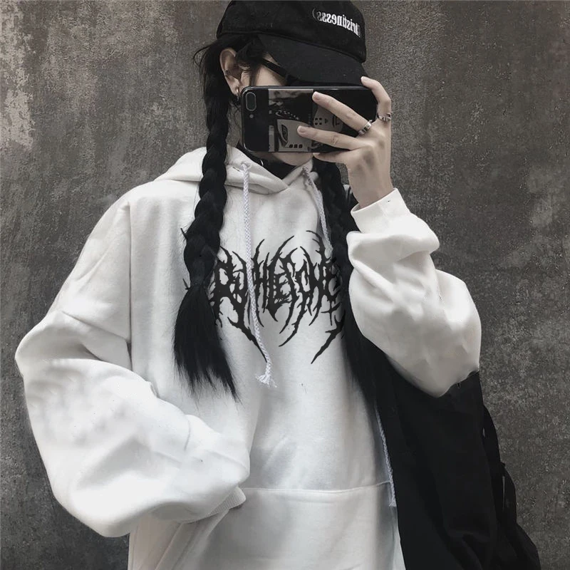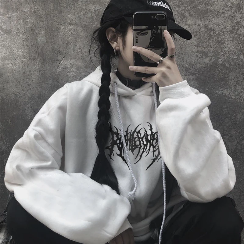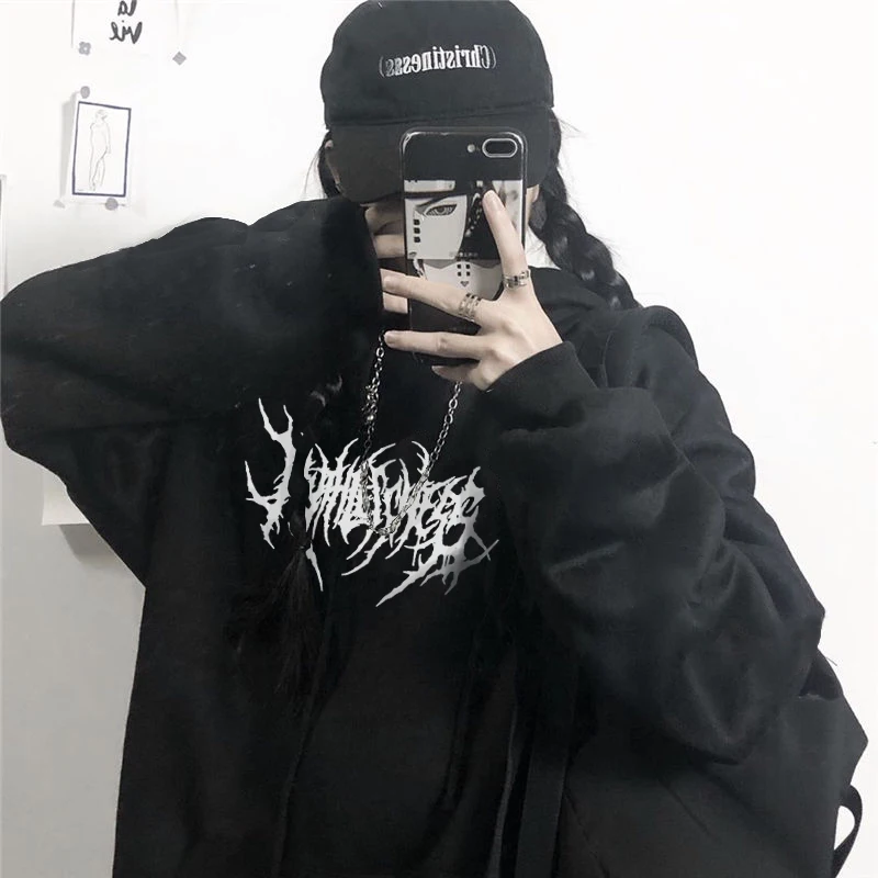 Толстовка Женская, черная, свободная, вязаная, с капюшоном, с принтом