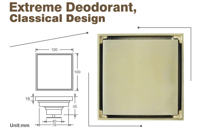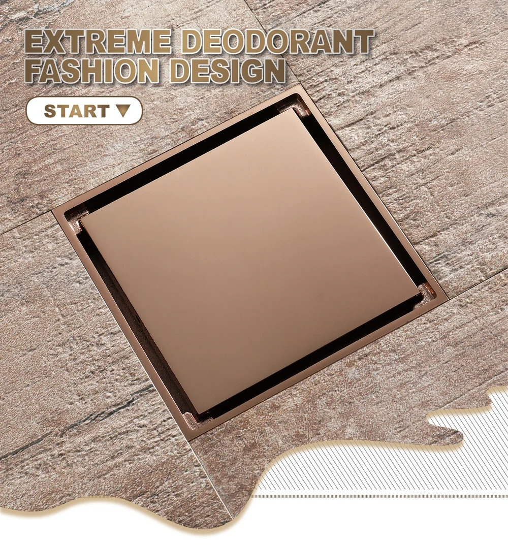 Трап 10 см * 10 см душ Трап 304 SUS матовый золотой дезодорант для ванной комнаты скрытый напольный сливной фильтр крышка решетки отходов