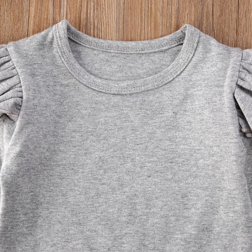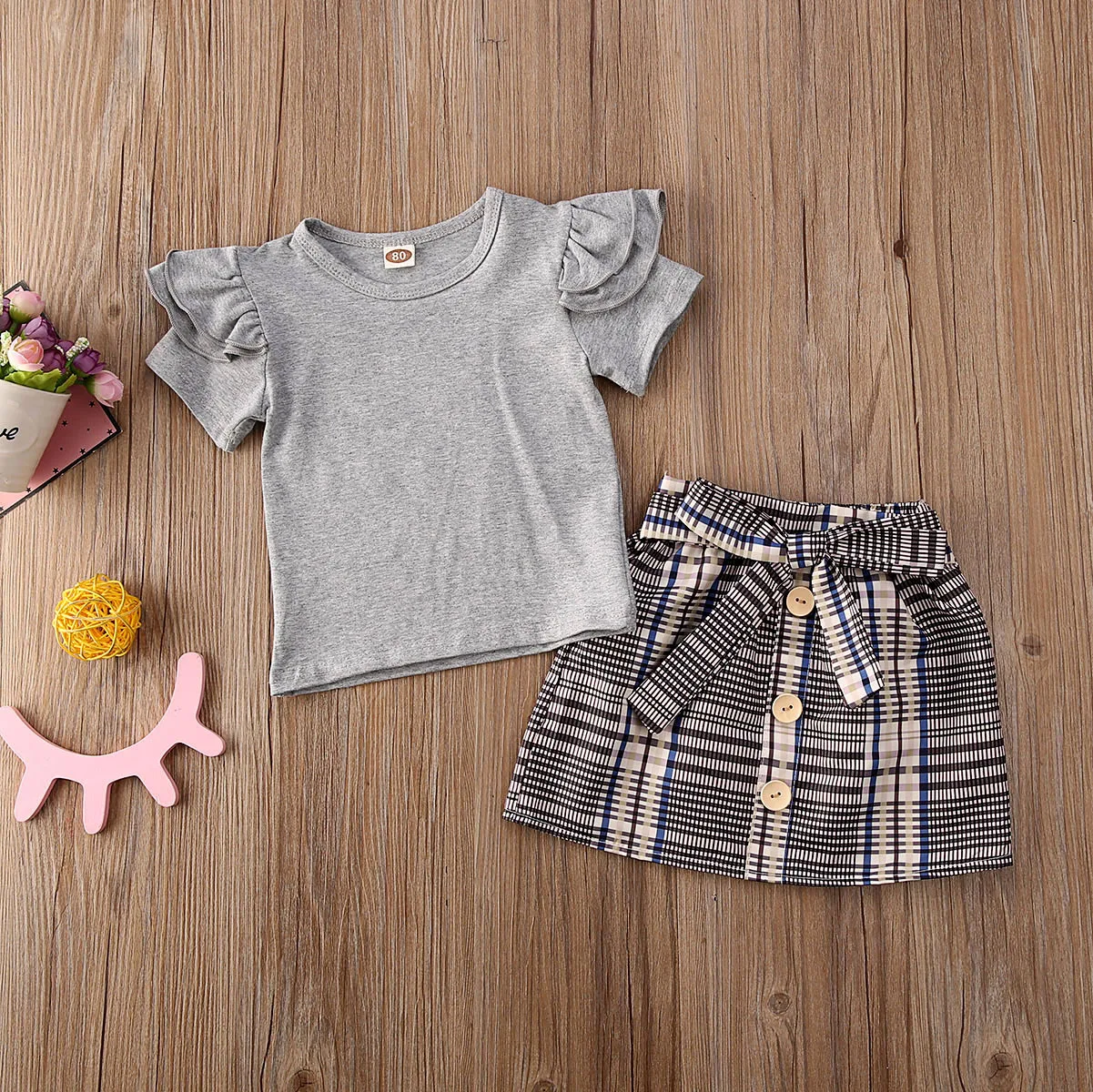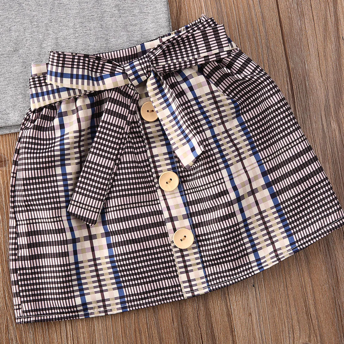 Комплект одежды для девочек, осенне-зимний теплый комплект из 2 предметов, топ с длинными рукавами-крылышками, клетчатая юбка с бантом для малышей
