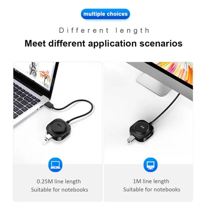 2. Концентратор USB 2,0/3,0 предназначен специально для ноутбука, настольного компьютера, легко расширяет один порт USB2.0/3,0 на четыре.