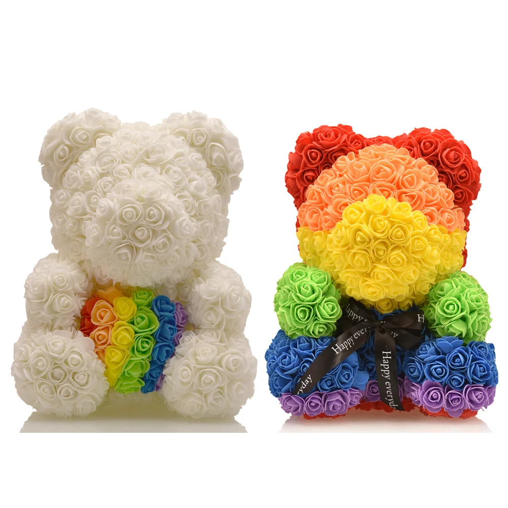 Розовый медведь 40 см Мишка Тедди с сердцем для женщин подарок медведь с цветком